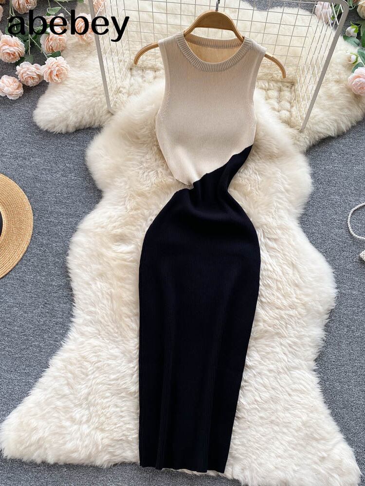 女性の夏のニットドレス2022タンクシックなニットサンドレスパーティースリムAライン中空アウトセクシーなドレス サマー 夏物 Abe81461216099