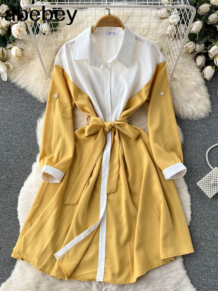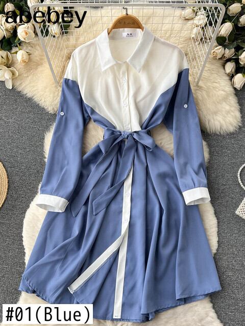 2022年長袖女性ロングシャツドレス春秋ボタンゆったりとした服ローブVestido スプリング 春物 オータム 秋物 Abe57795630200