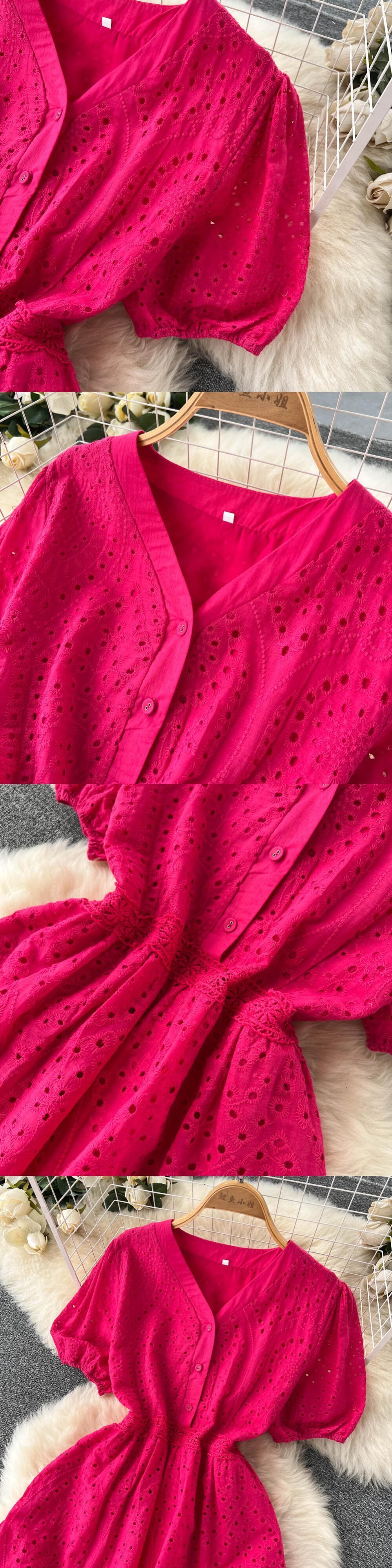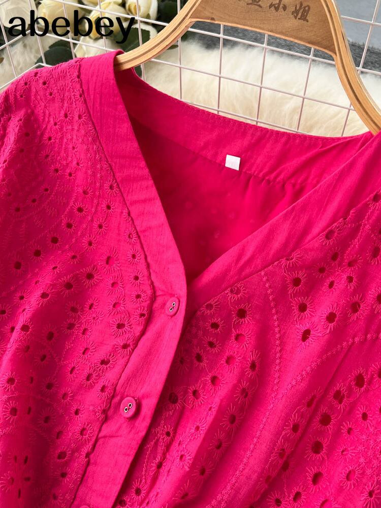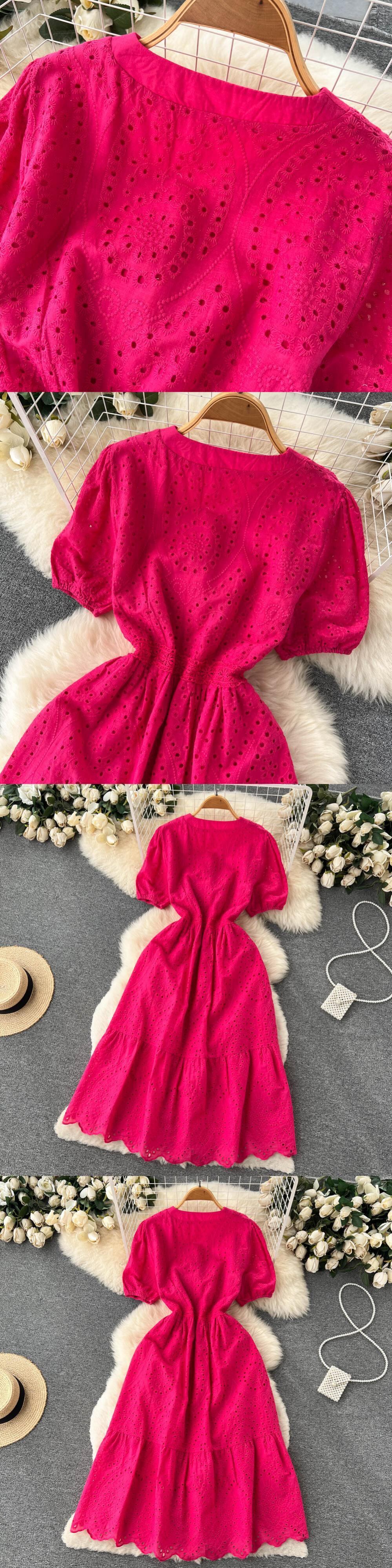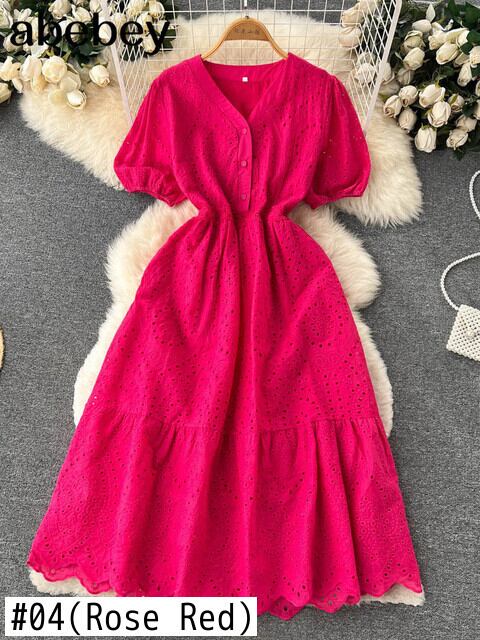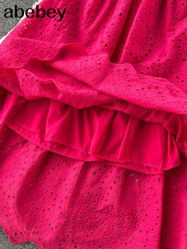 ブラック/グリーン/レッド2022サマーレース刺繡ドレス女性半袖ドレスパーティービーチマキシロングドレス ショート ハーフスリーブ 刺繍 夏物 Abe9657440546