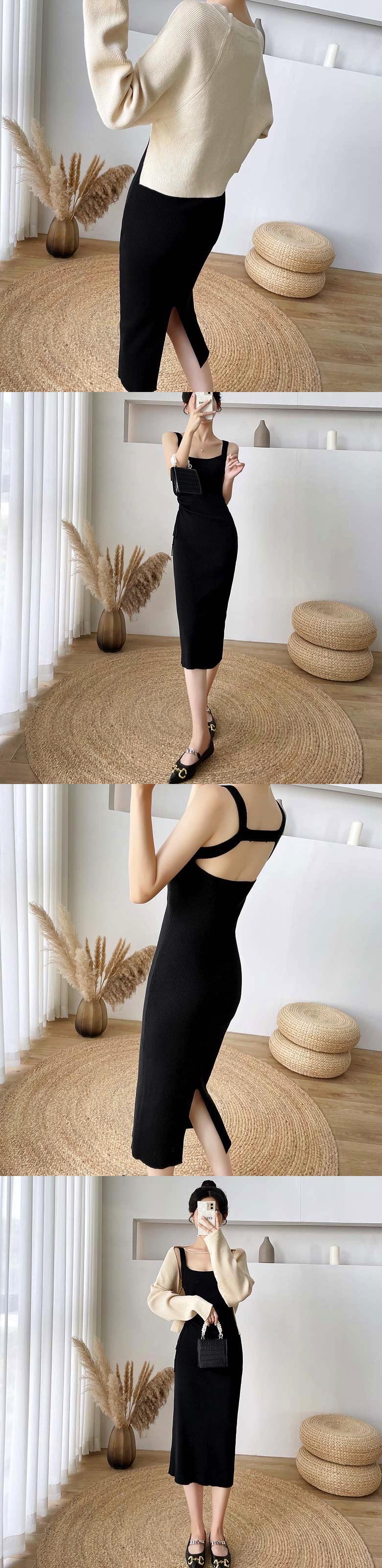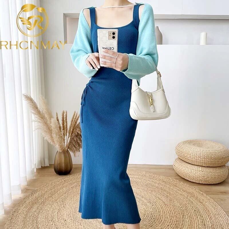 女性2点セット2021年秋フレンチレトロスタイルカーディガンコートトップ+スリミングハンギングネックミディロングドレスセータースーツ オータム 秋物 Rhc41418632126
