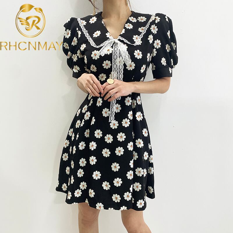 女性のレースの弓ピーターパンカラードレス小さなデイジープリントドレス夏の女の子学生Vestidos女性の服 リボン サマー 夏物 Rhc15882118738