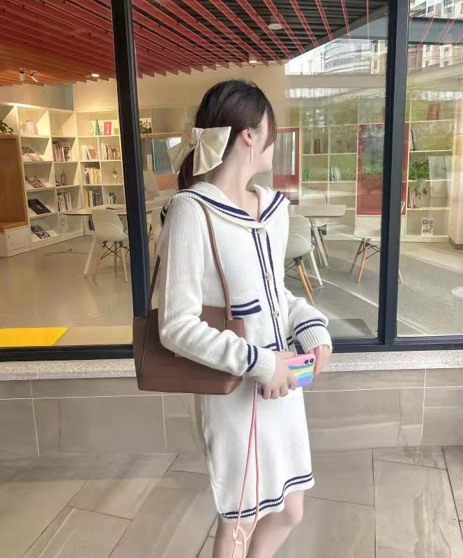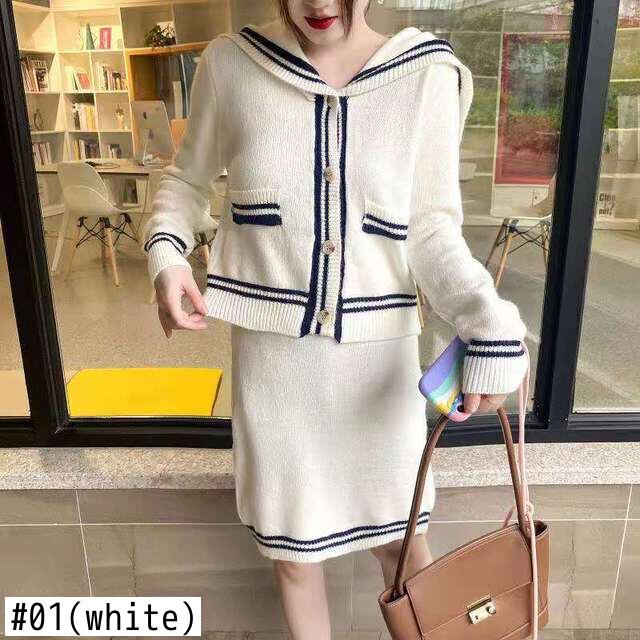 2021年秋ニット2点セットレディース衣装カーディガンシングルブレストストライプセーターコート+ミニスカートニットスーツ オータム 秋物 Rhc69005756565