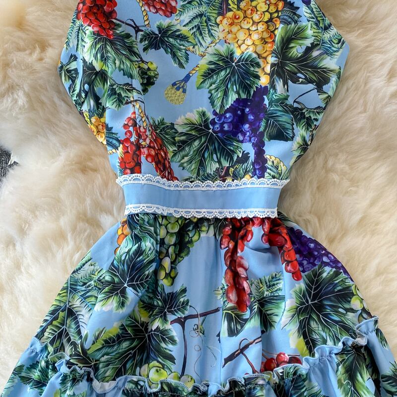 滑走路サマービーチホリデードレスレディーススパゲッティストラップフローラルプリントシックミディドレスレースアップ服 夏物 花柄 Rhc6319727133
