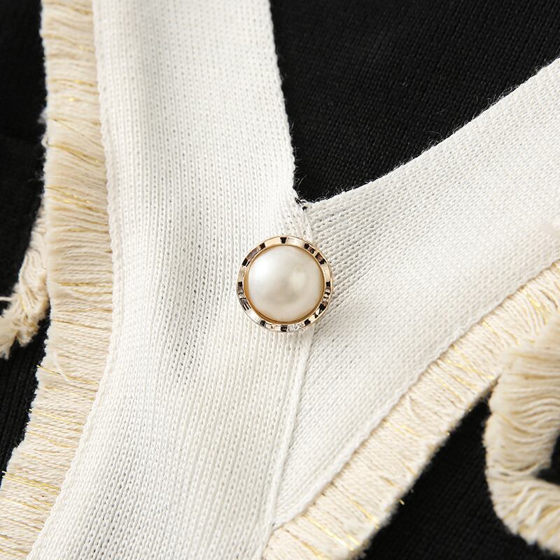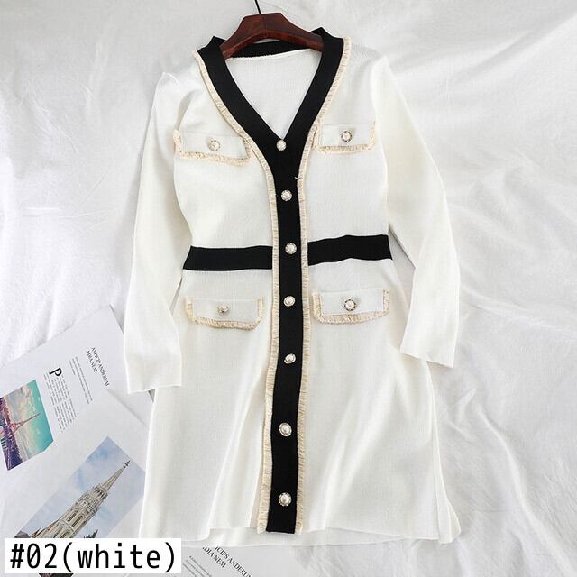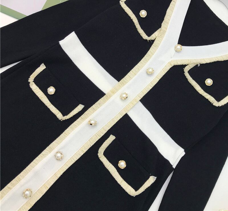 2020年春のドレス女性黒と白のドレス滑走路長袖セーター編み物ドレス ロング ホワイト ブラック スプリング 春物 Rhc54147837645