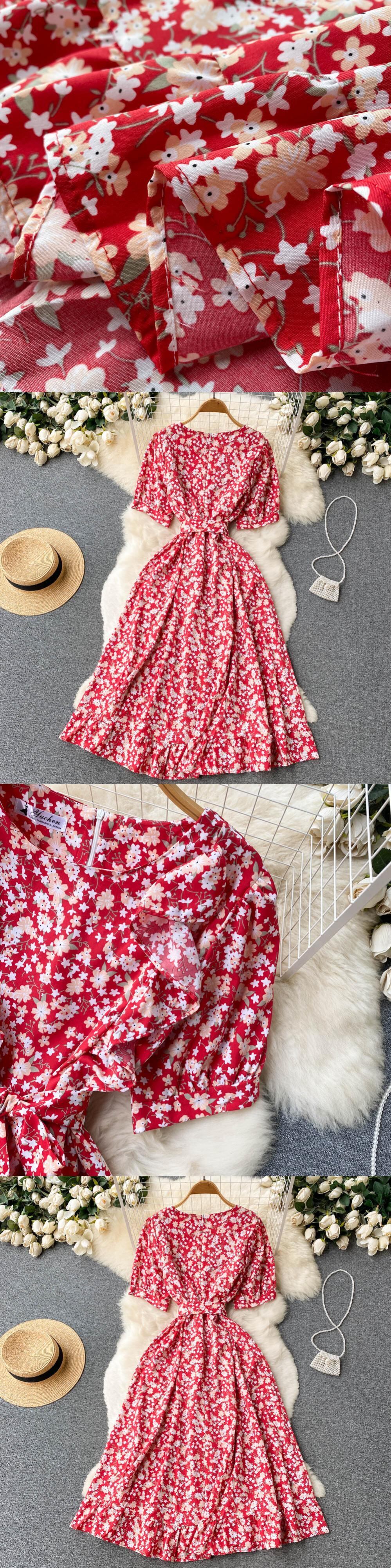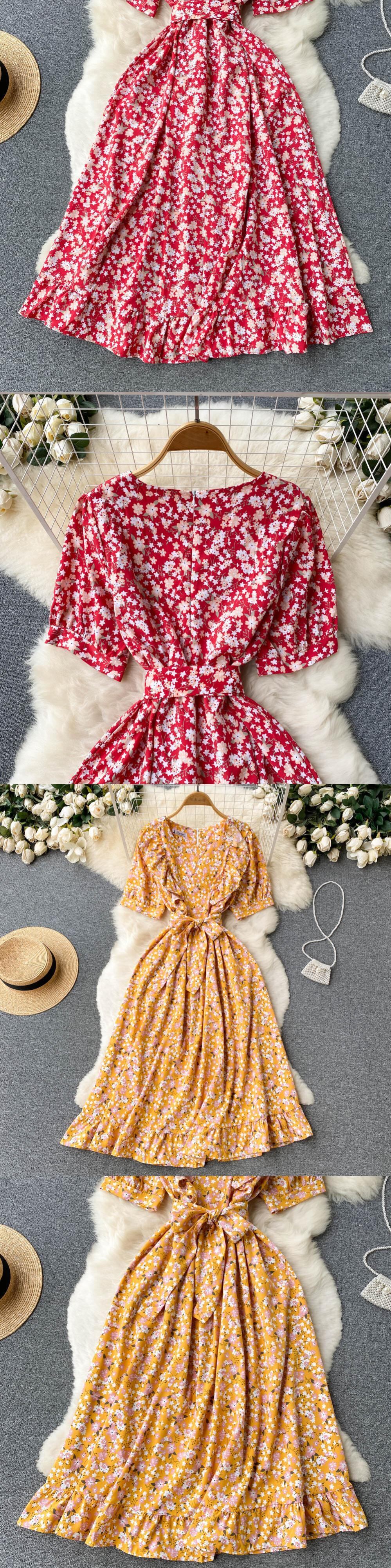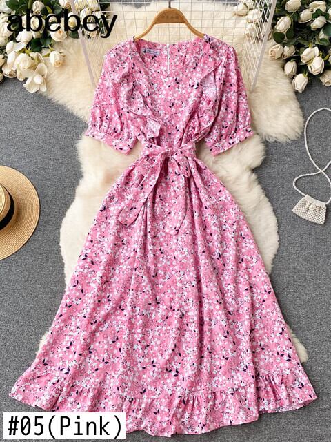 フリル自由奔放に生きる2022Oネックサマーフローラルプリントロングスプリットドレスパーティーレディースハイウエストドレスビーチホリデーチュニックドレス ハイウェスト ラッフル 夏物 花柄 Abe54109832052