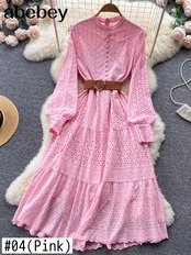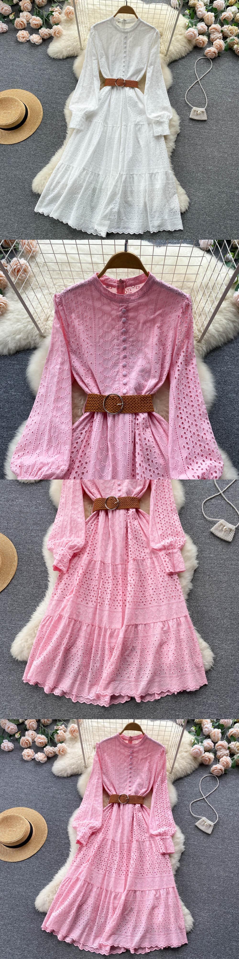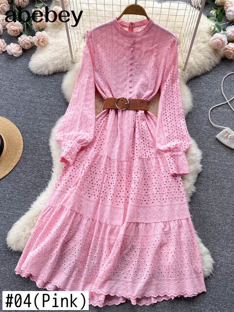 2022年秋ホワイト/グリーン/ピンクレース刺繡ドレス女性長袖ドレスパーティービーチマキシロングドレス 刺繍 オータム 秋物 Abe400833839