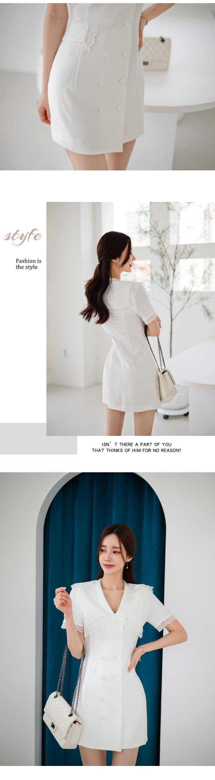 女性のレースのフリルの白いドレス2022年-終わりの女性の夏のダブルブレスト半袖スーツドレス ショート ホワイト ハーフスリーブ ラッフル サマー 夏物 Rhc61792262632