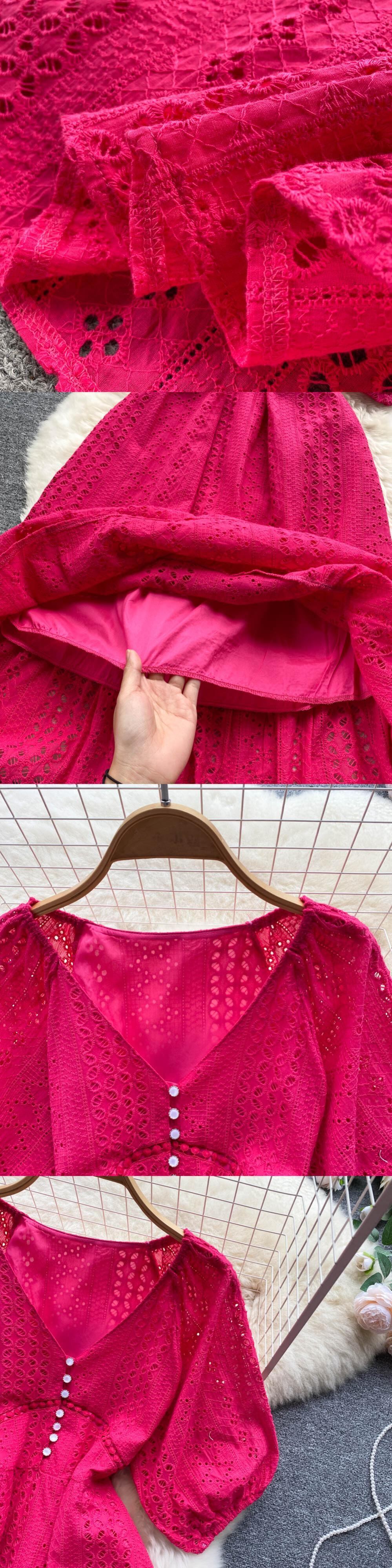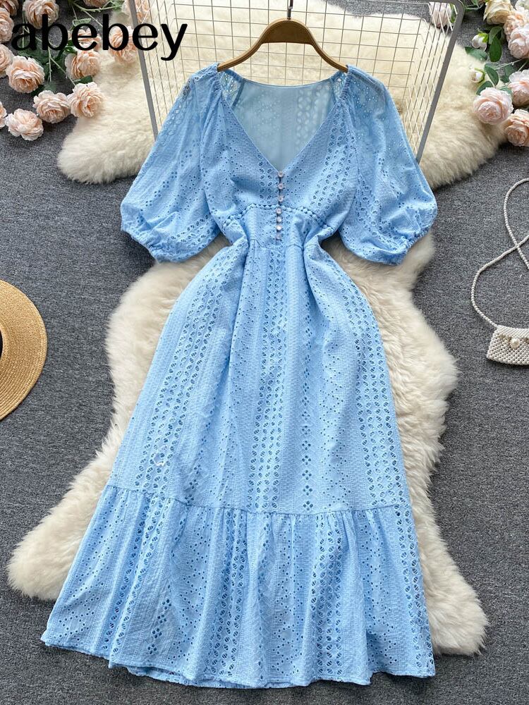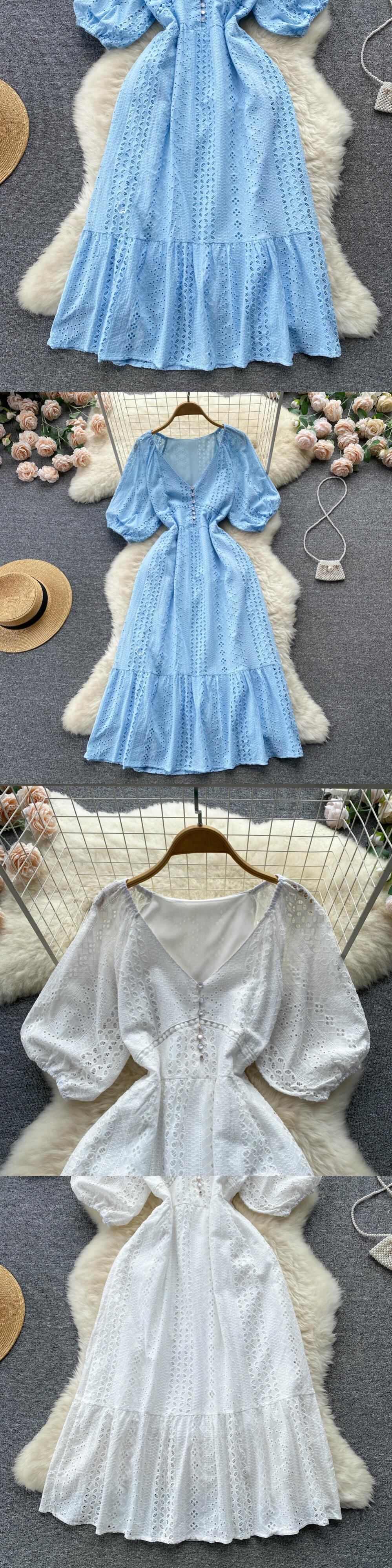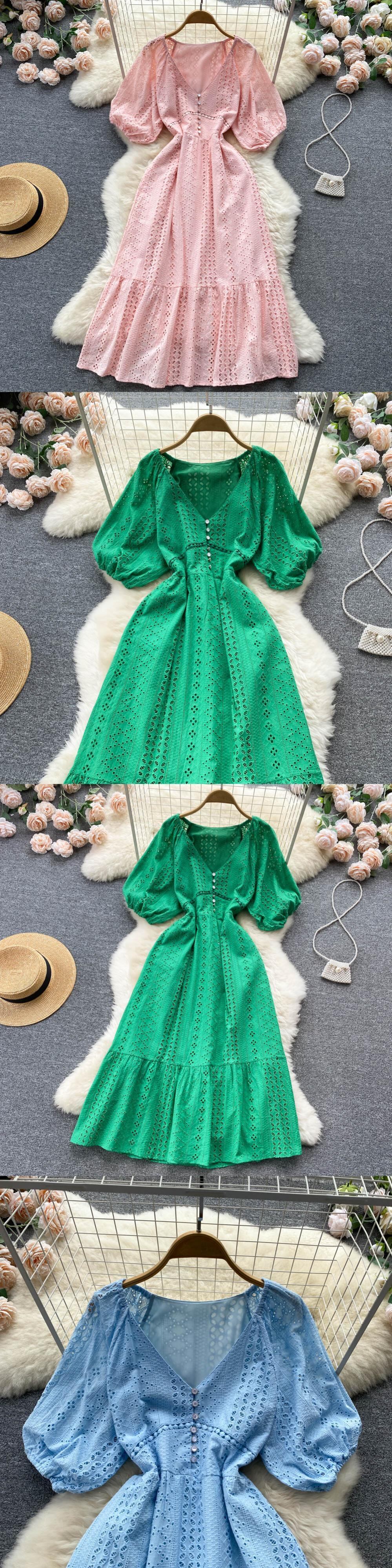 2022年夏の白/緑/ピンクのレースの刺繡ドレス女性のパフスリーブのドレスパーティービーチマキシロングドレス ホワイト 刺繍 サマー 夏物 グリーン Abe56204519519