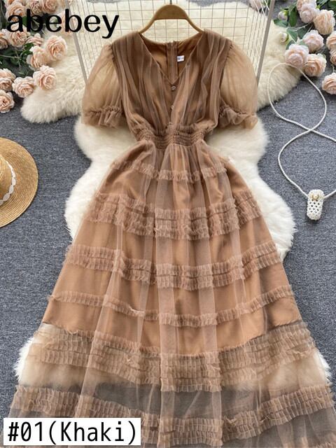 滑走路セクシーな女性ミディドレスVネックパフスリーブフィットフレアレースパーティードレスロングクリスマスドレス Abe54063248850