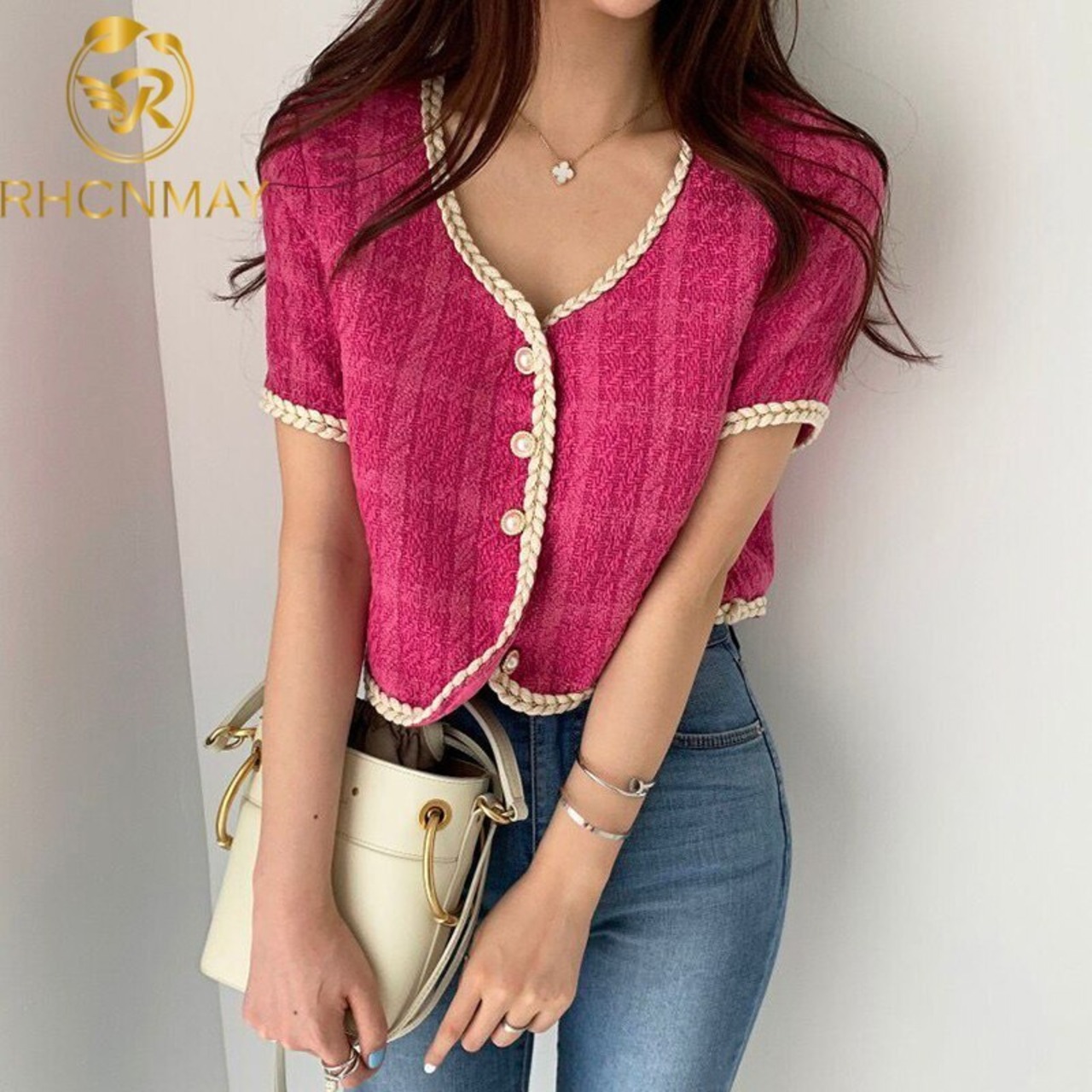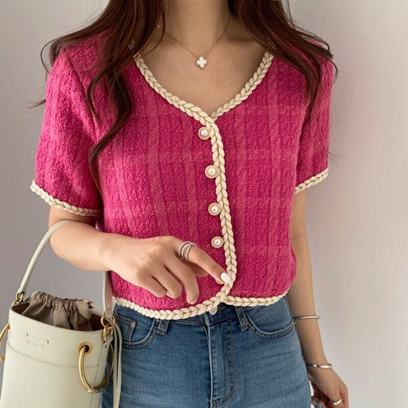 2020年夏レトロショートチェック柄ツイードコートレディース半袖薄手ショートジャケットトップ サマー 夏物 Rhc87926423554