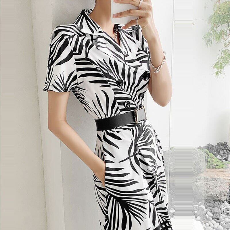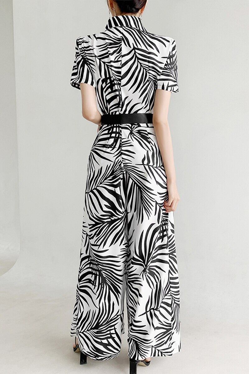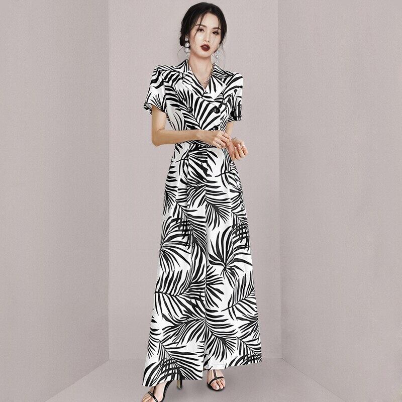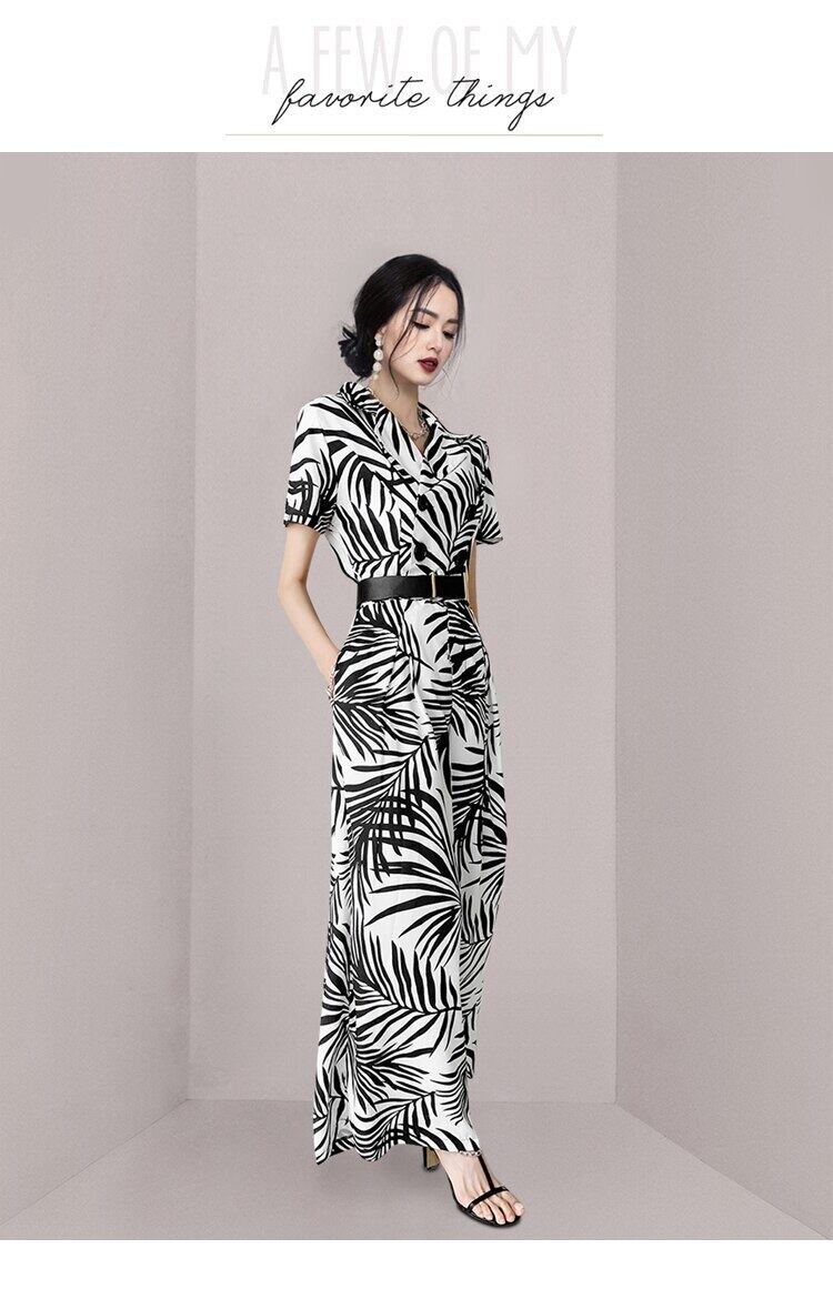 夏のシンプルなOLウエストプリントジャンプスーツレディーススリムロングロンパースマルワークウェアプレイスーツ サマー 夏物 Rhc93743129799
