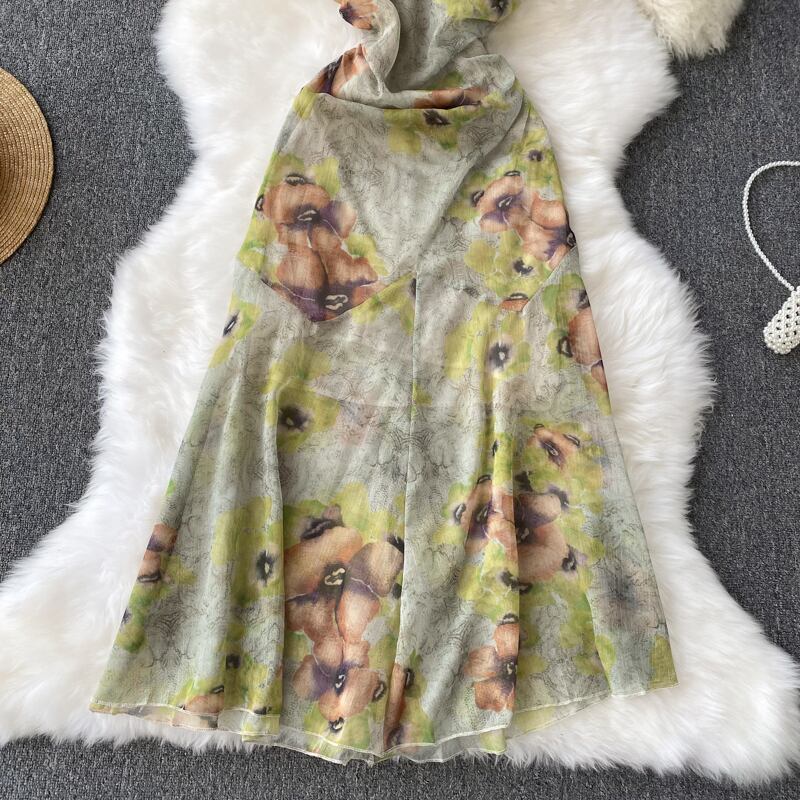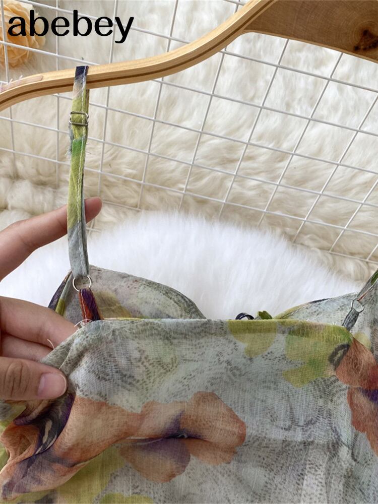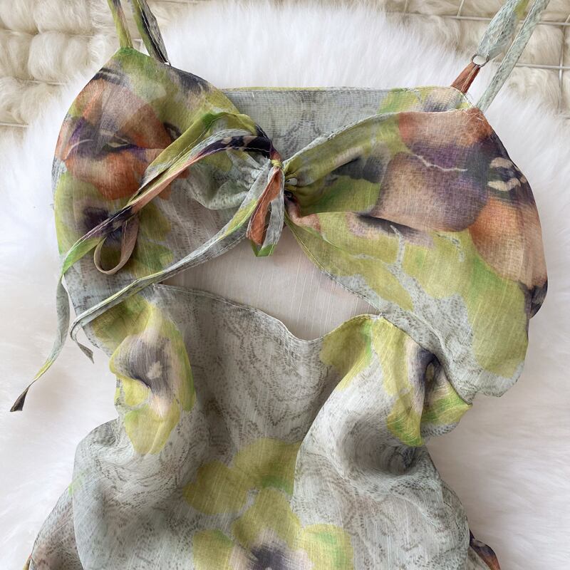 緑の女性の花のスパゲッティストラップドレス弾性シャーリングセクシーな中空背中の開いたパーティードレス夏の自由奔放に生きる休暇ビーチサンドレス エラスティック 伸縮 サマー 夏物 花柄 グリーン Abe16024092746
