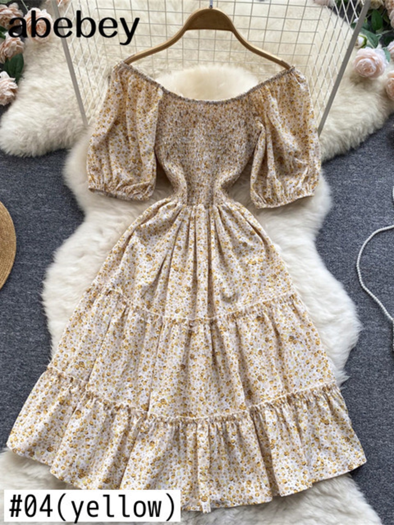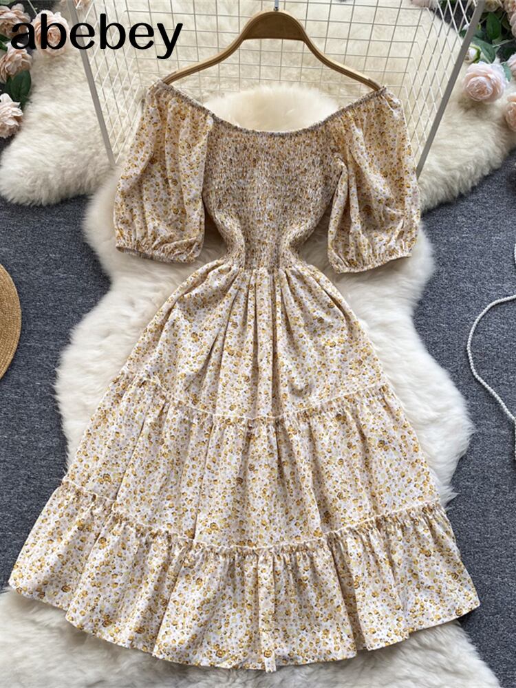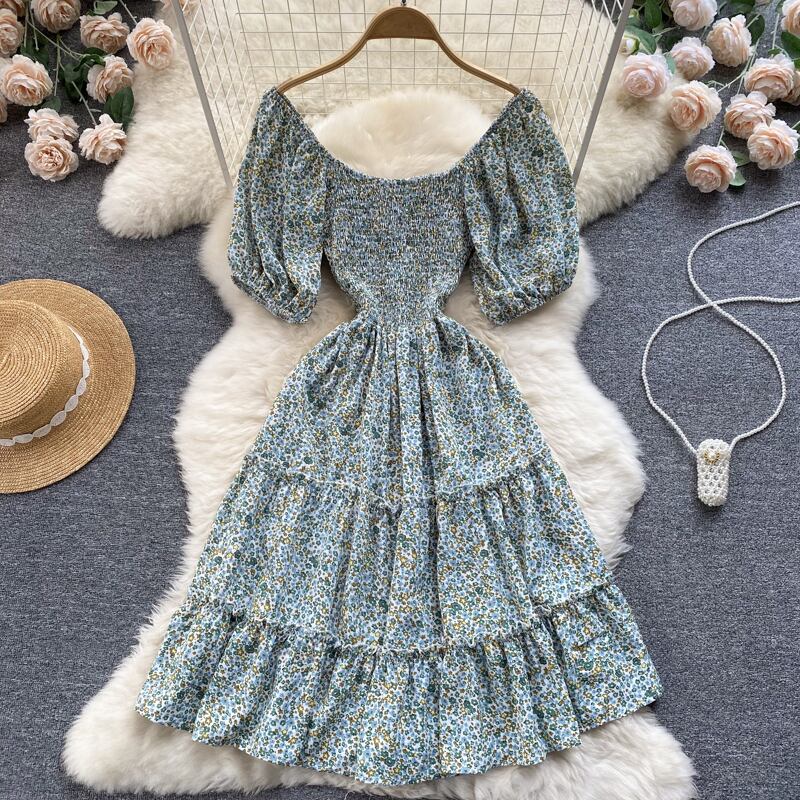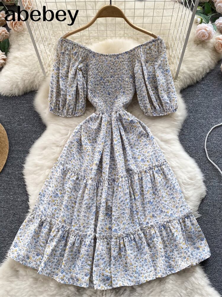 2022年夏のカスケードフリルドレス女性パフスリーブプリントフローラルショートパーティードレス衣装サンドレス ラッフル サマー 夏物 花柄 Abe6156842429