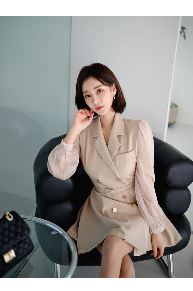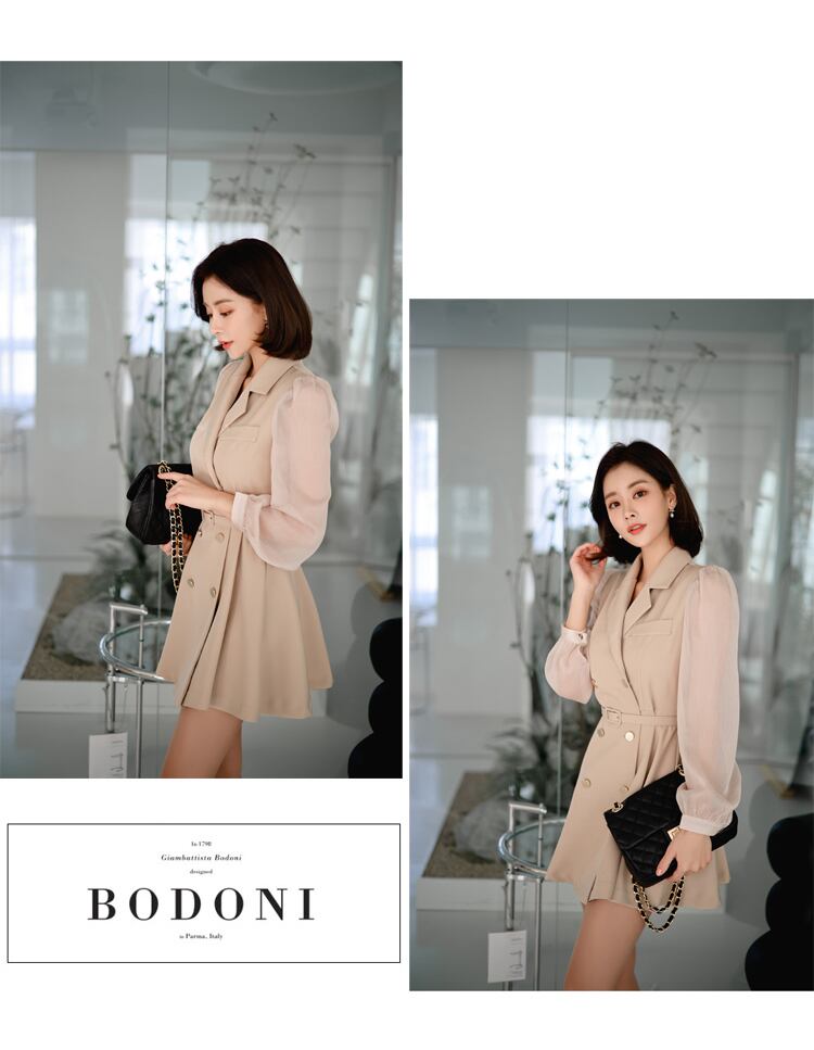 春の女性のビーズブレザーラペルレースアップパーティードレスダブルブレストAラインドレスVestido スプリング 春物 Rhc62507481973