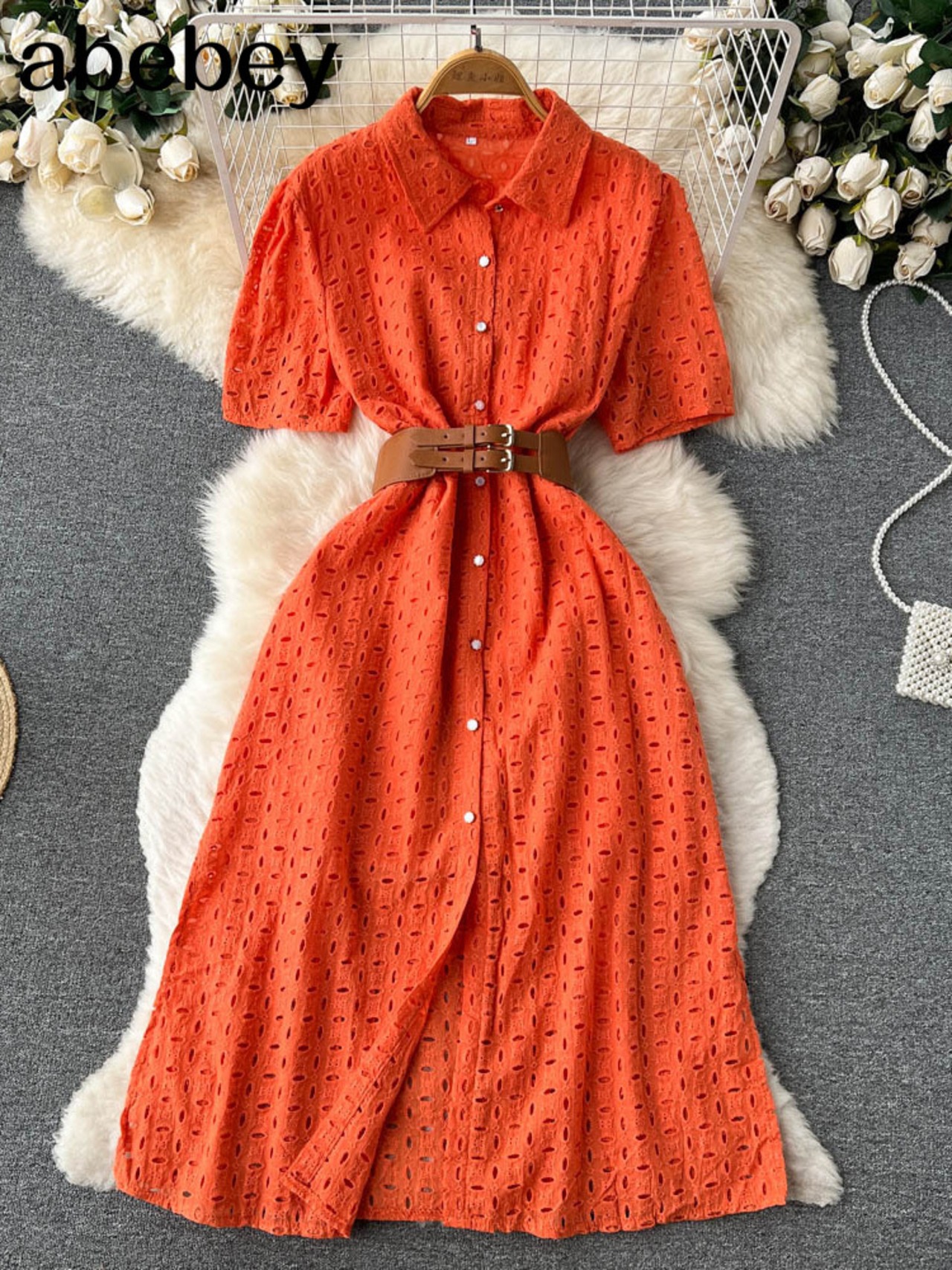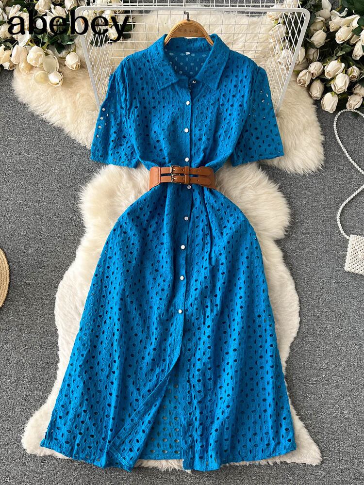 ホワイト/グリーン/ピンク2022サマーレース刺繡ドレス女性半袖ドレスパーティービーチマキシロングドレス ショート ハーフスリーブ 刺繍 夏物 Abe848966596