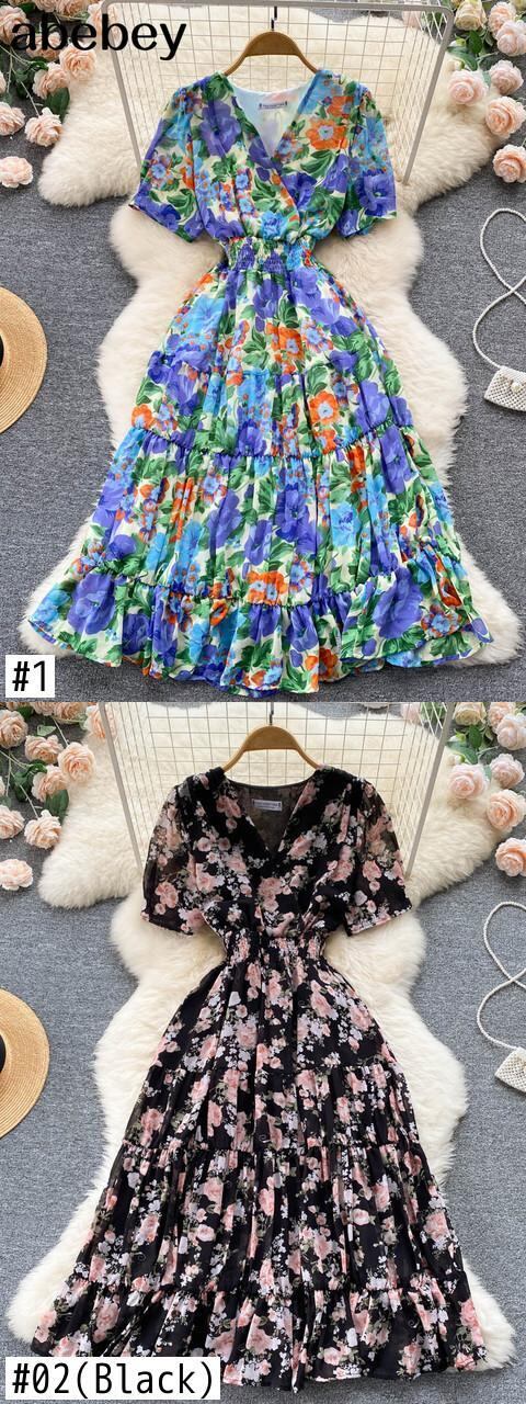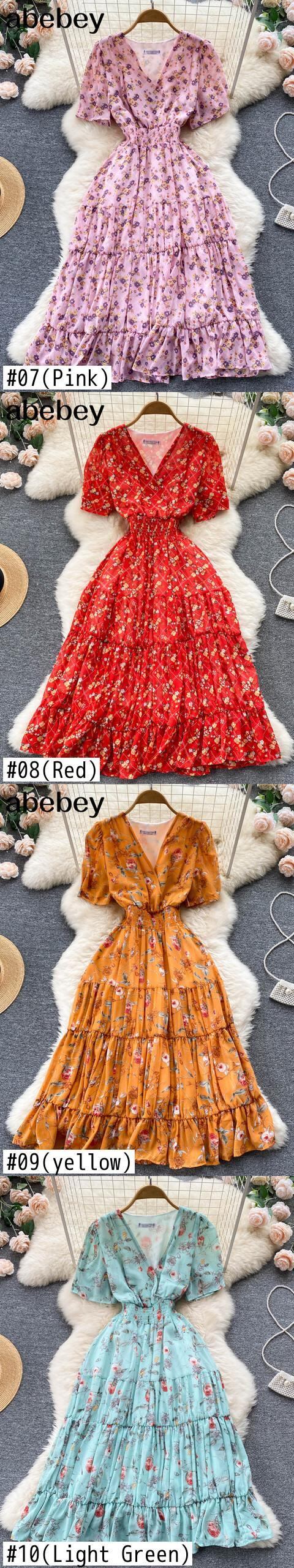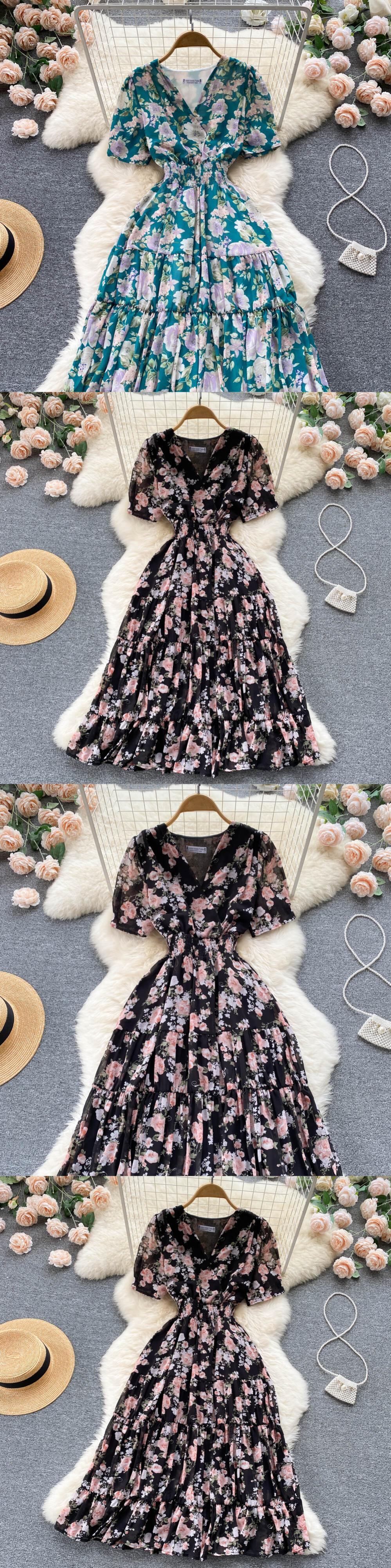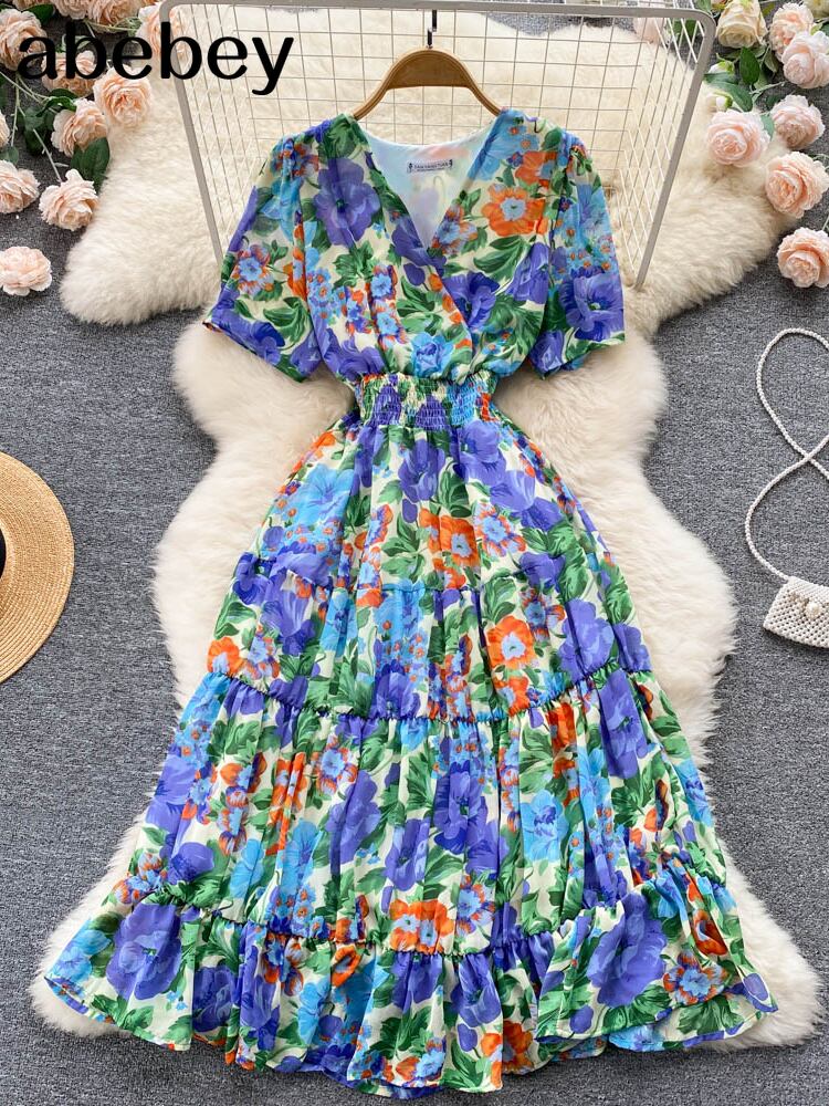花柄ドレス女性夏セクシービーチ自由奔放に生きるミディドレス半袖2022パーティードレス休暇 ショート ハーフスリーブ サマー 夏物 Abe89193773049
