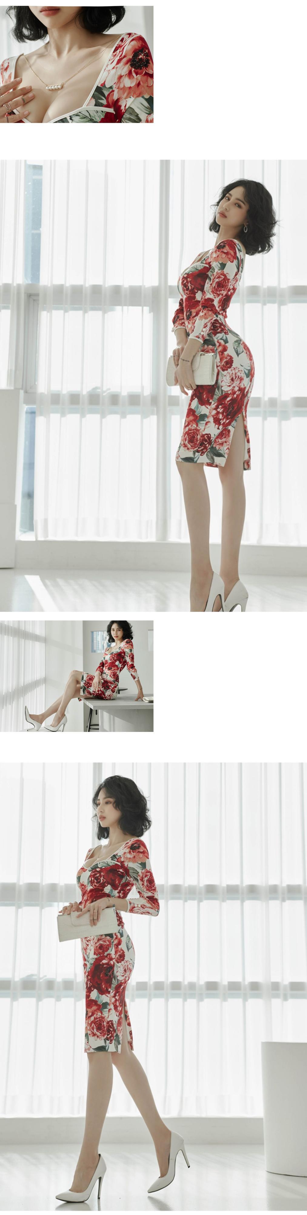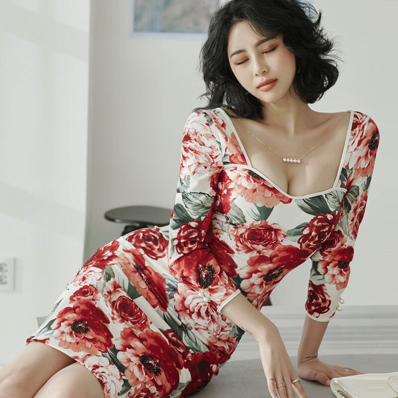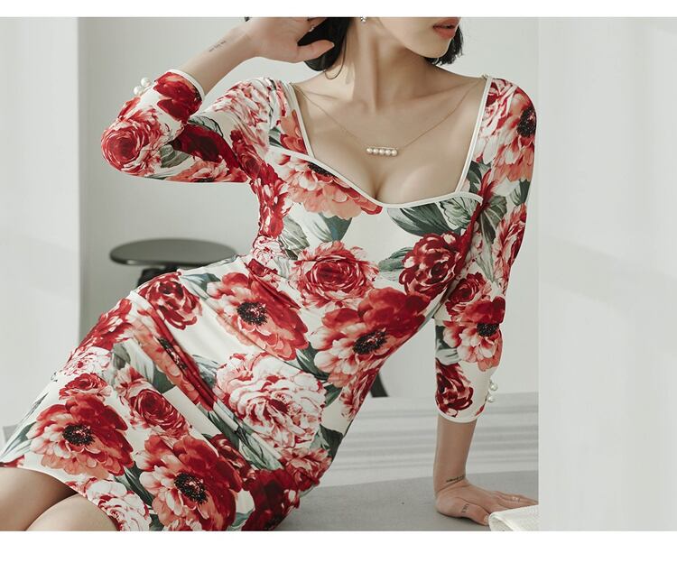 2022年サマードレスレディースフローラルプリントスクエアカラースリースリーブウエディングオフィスレディースリムパーティードレスマル 夏物 花柄 スクウェア 会社 学校 通勤や通学にも Rhc76627929157