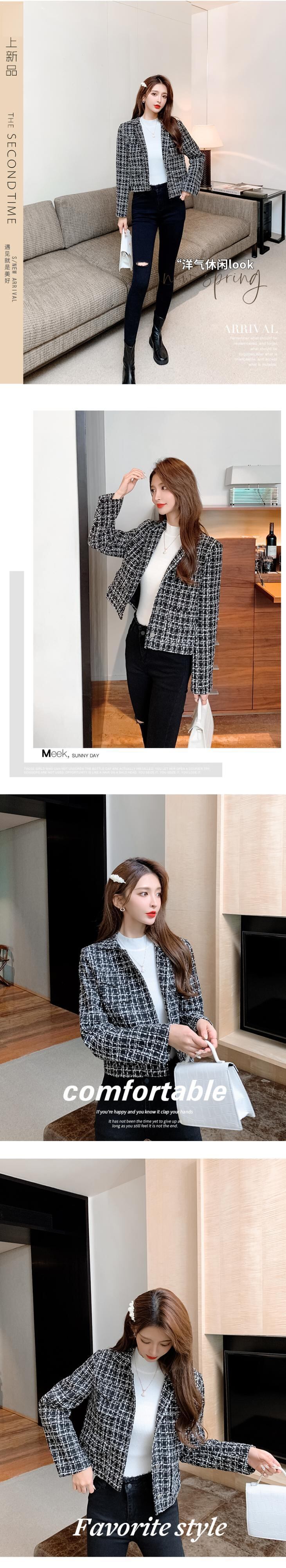 ショートラペルスモールフレグラントウィンドジャケットレディースフレンチショートチェック柄ジャケット2021レトロジャケットトップ Rhc96453961041