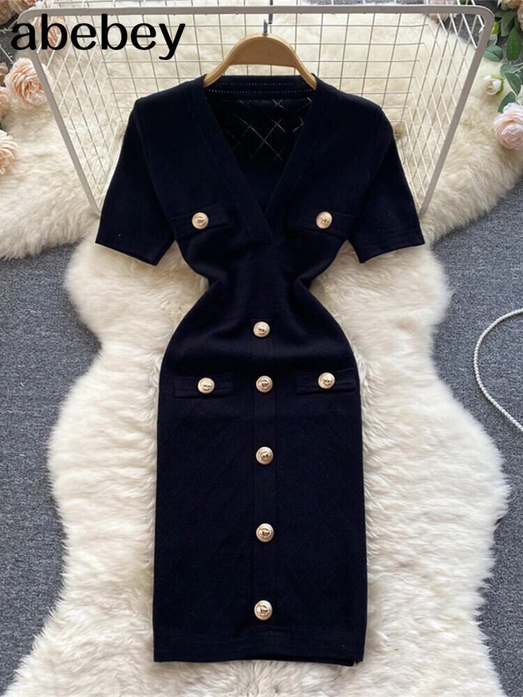 女性ニットペンシルドレス半袖Vネック伸縮性スリムドレス秋冬セクシーボディコン暖かいセータードレス ショート ハーフスリーブ エラスティック オータム 秋物 ウィンター 冬物 Abe34777186385