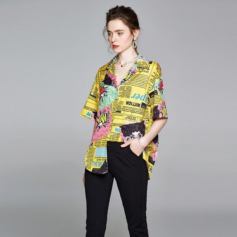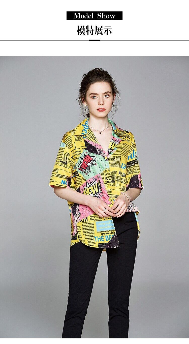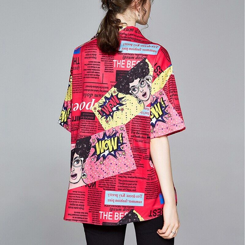 サマーシャツブラウスレター漫画プリント半袖シャツ女性ルーズプラスサイズブラウストップス ショート ハーフスリーブ 大きめサイズ 夏物 Rhc90080156974