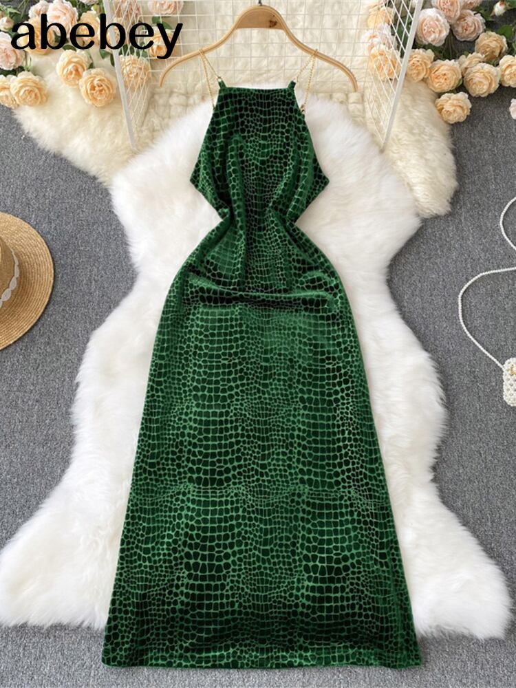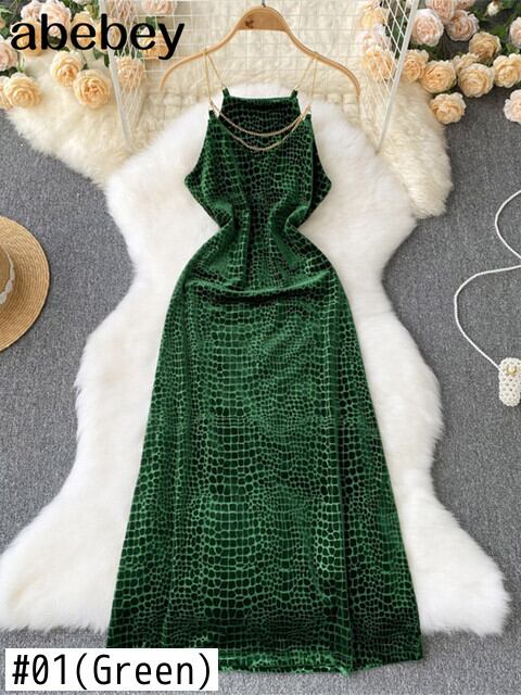 夏のパーティーミディドレス女性2022ストラップセクシーなWasitノースリーブグリーンスウィートドレス 大人ガーリー キュート カジュアル サマー 夏物 Abe67972115132