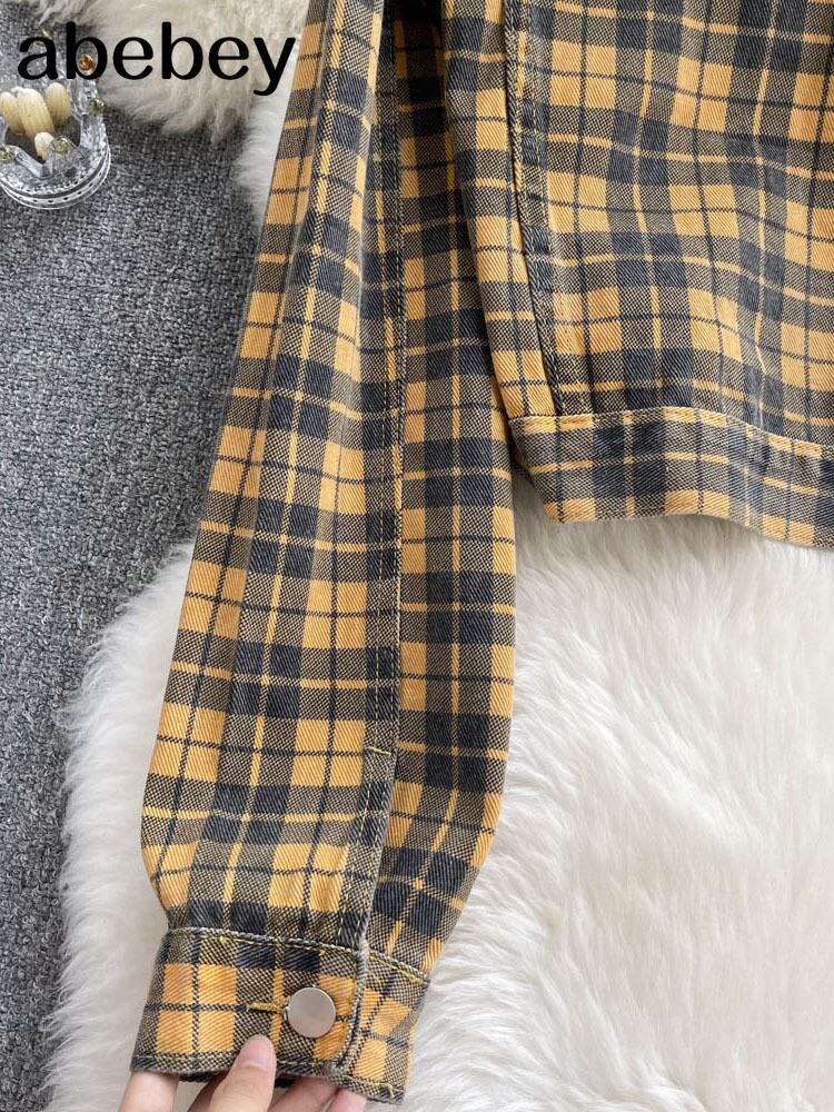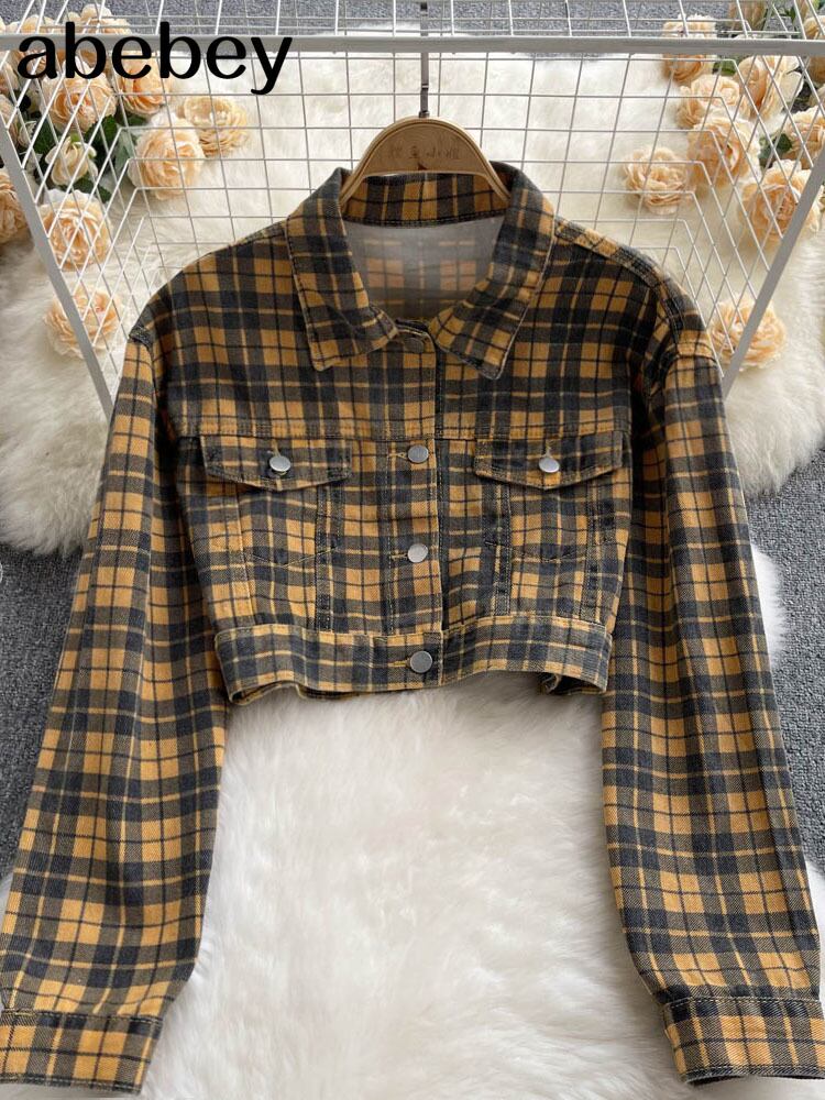 ラペルチェック柄コートレディース長袖ポケットストリートボタンルーズサマージャケット ロング 夏物 Abe54726675272