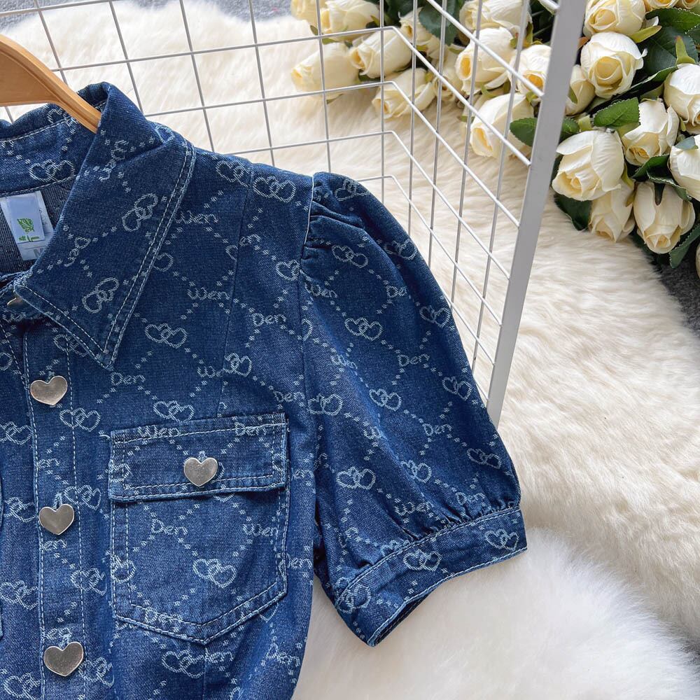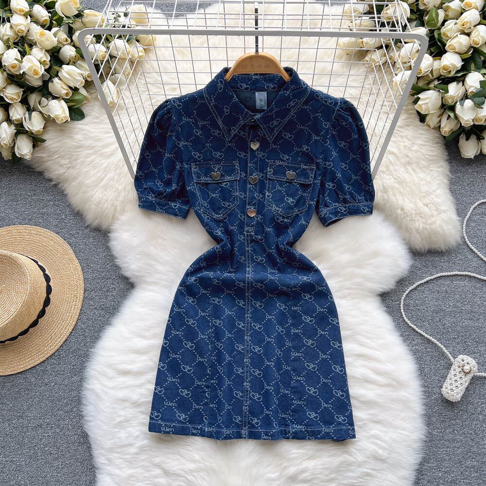 チェック柄デニム2022サマードレスシングルブレストレディースラペルスリムAラインミニワンピース 夏物 Abe86092575866