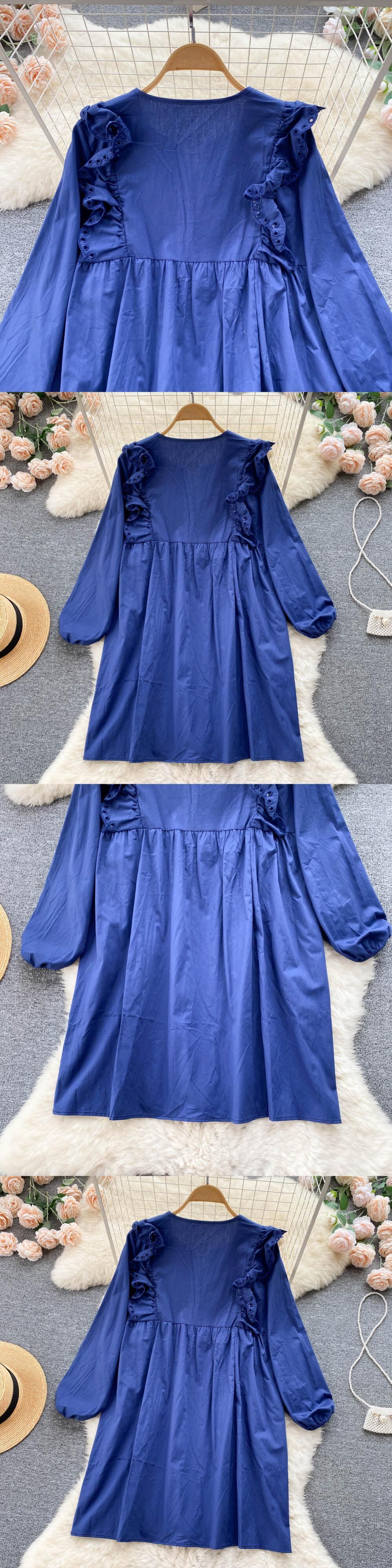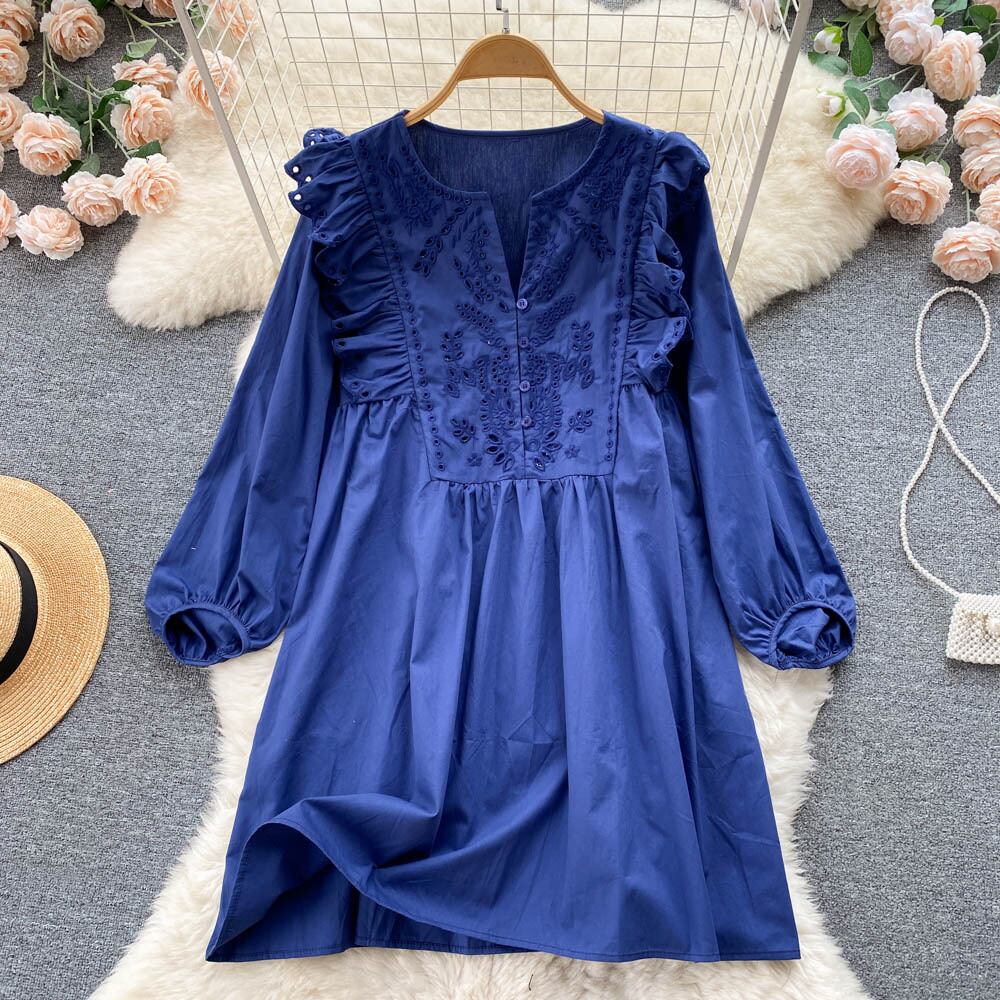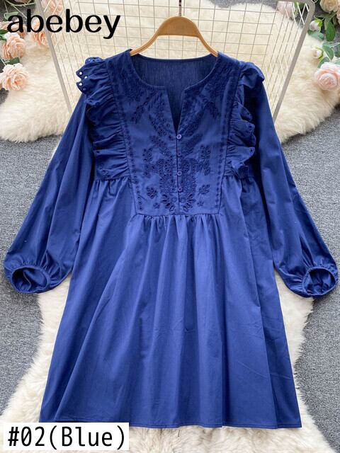 刺繍ボヘミアン女性ドレス長袖ソリッドレトロOネック2022ルーズミディドレス ロング ソリッドカラー Abe62350389345