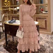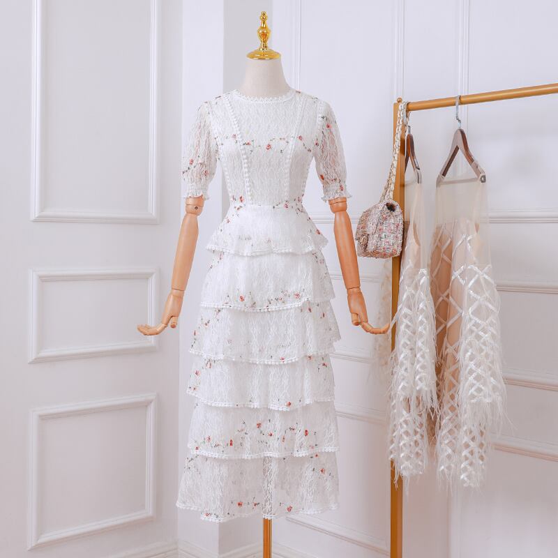 レイヤーフリルレースマキシドレス滑走路夏の女性白い花の刺繡ロングドレス中空アウトケーキパーティードレス ホワイト ラッフル 刺繍 サマー 夏物 花柄 Rhc6315692628