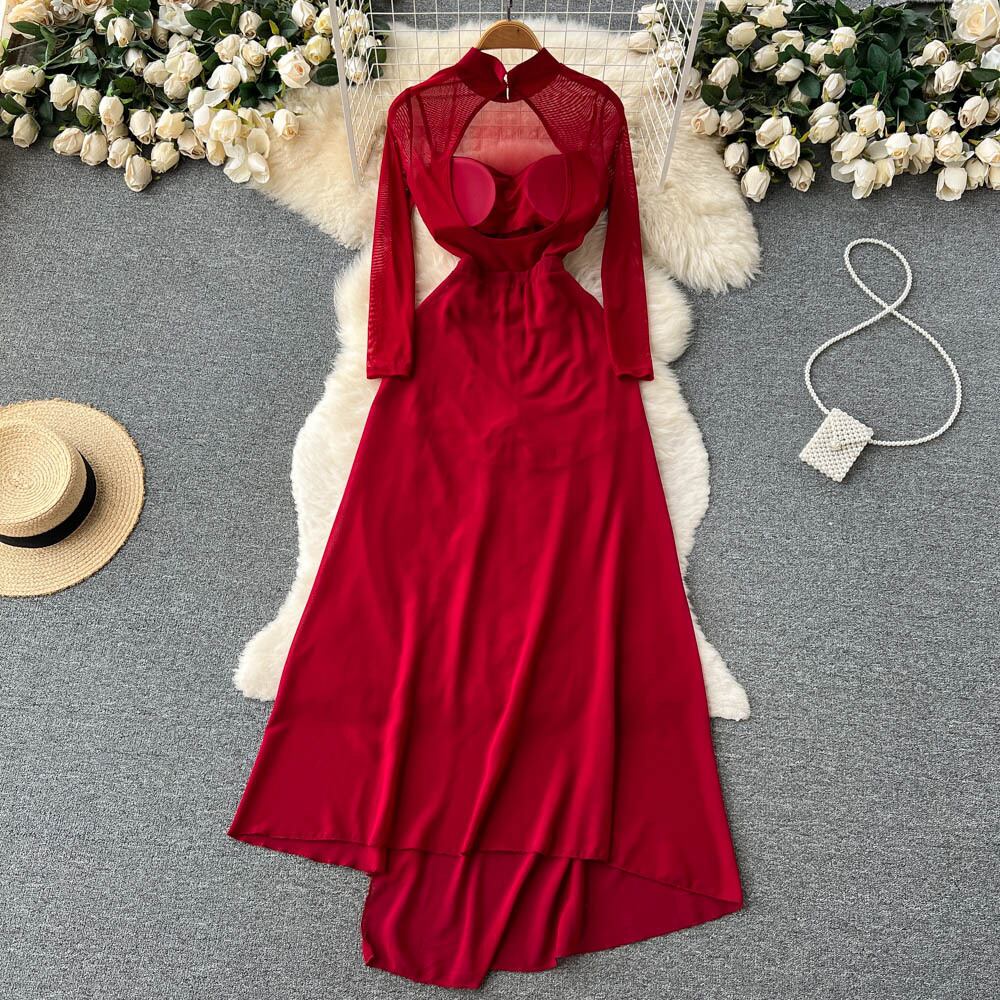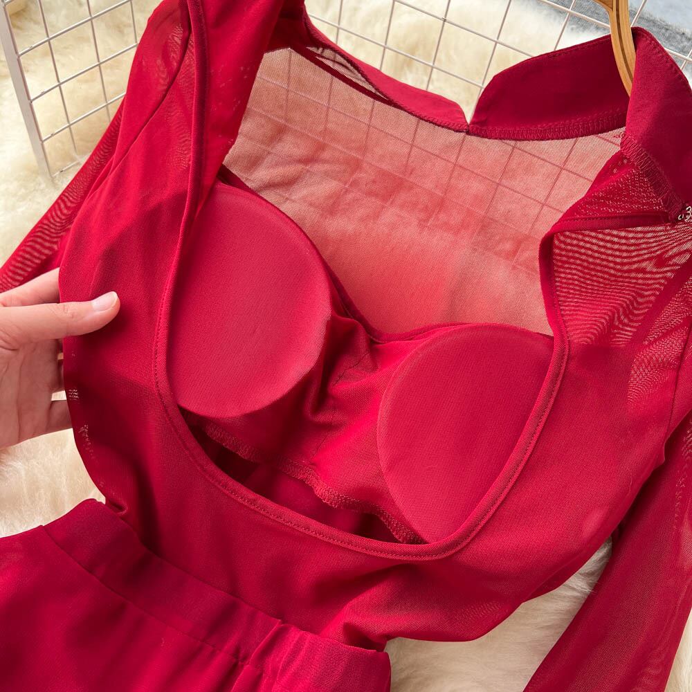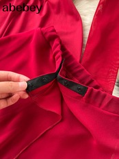 赤の女性の夏のセット2022年休暇不規則な気質ロングスカート弾性ウエストツーピースセット レッド エラスティック 伸縮 サマー 夏物 Abe71302780195
