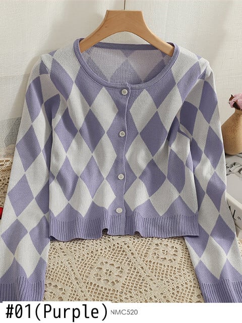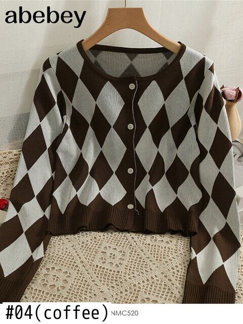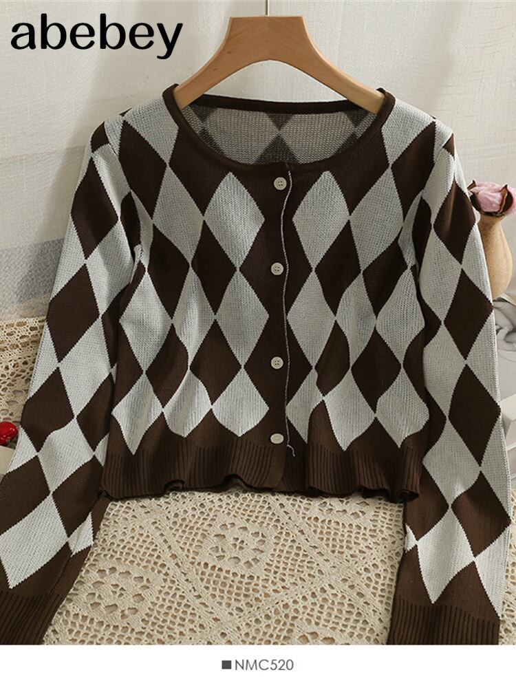 チェック柄の女性用セーターオータムルースショートニットセーター長袖ボタンOネック無地ピンクカーディガントップ ロング 秋物 ソリッドカラー Abe35622532853