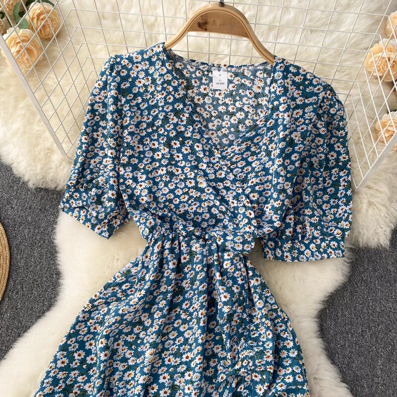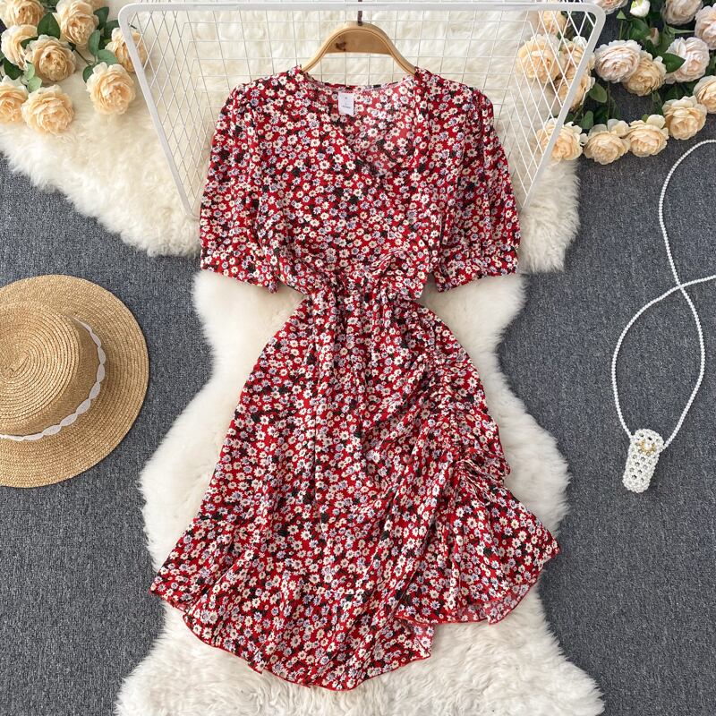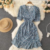 女性フローラルラップドレスVネックタイアップフロントフリルミニドレスサマーオフィスLady2022プリントペンシルドレス 夏物 花柄 会社 学校 通勤や通学にも Abe80229604523