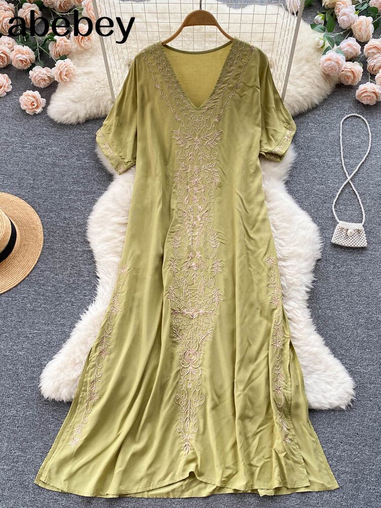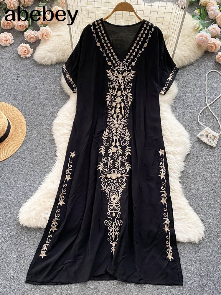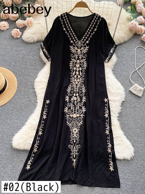 2022ブラック/ホワイト/ピンクホローアウト刺繍マキシドレス女性Vネック半袖ウエストAラインパーティーVestidos ショート レッド ハーフスリーブ Abe78962524517
