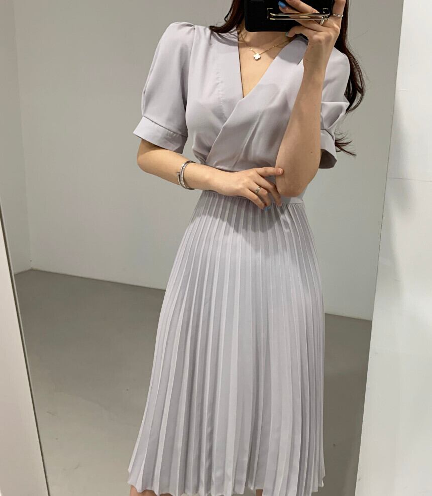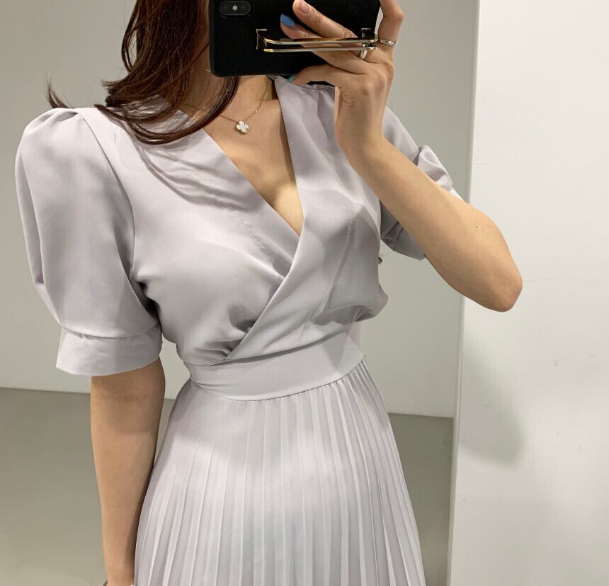 2020年夏のシフォンAラインプリーツロングドレス女性半袖Vネックベルト付きオフィスVestidos ショート ハーフスリーブ サマー 夏物 ハーネス 会社 学校 通勤や通学にも Rhc4269984534