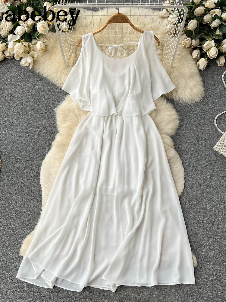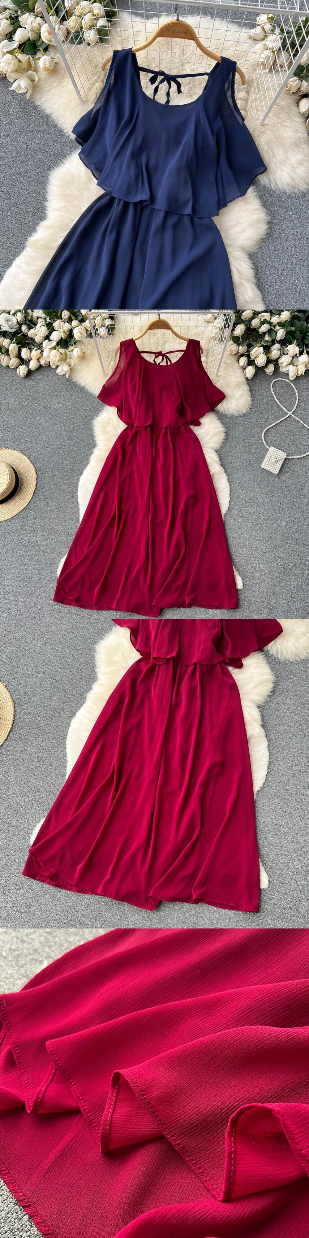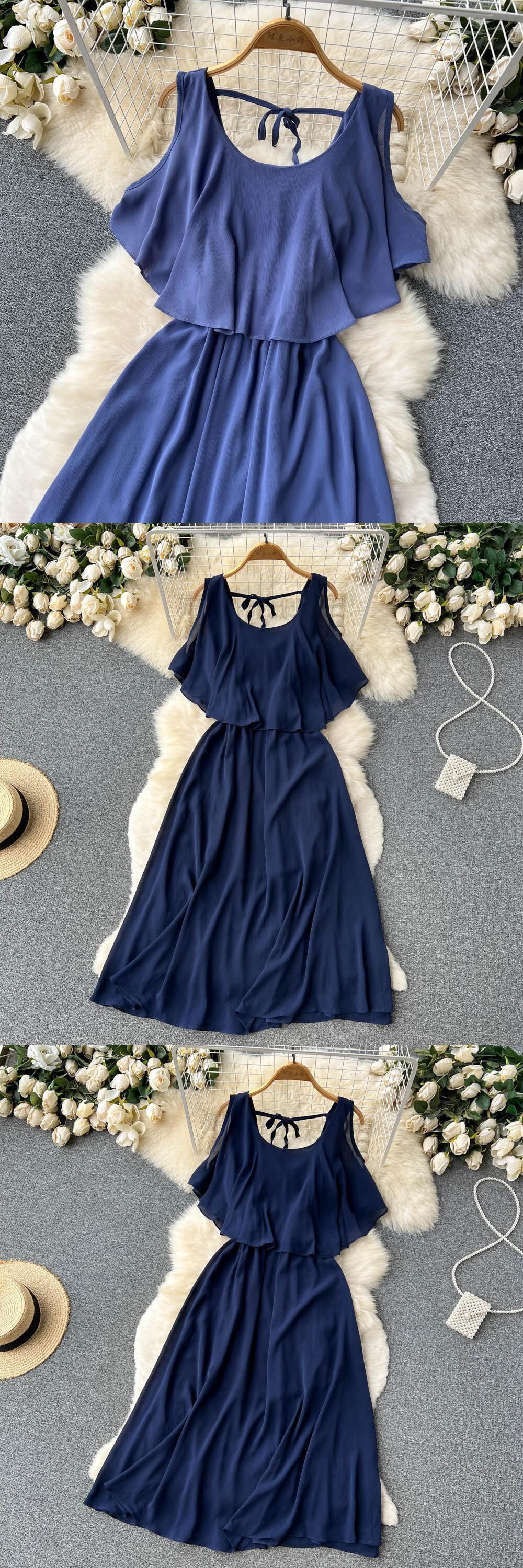 緑/青/白2022年夏のドレス半袖シフォンソリッドドレス女性半袖ビーチドレスの衣装 ショート ホワイト ブルー ハーフスリーブ サマー 夏物 ソリッドカラー グリーン Abe21345679245