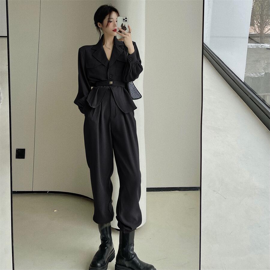 春秋スタイル2ピース衣装ルーズスーツジャケットコートとハーレムスーツパンツストリートウェアツーピースセット女性 スプリング 春物 オータム 秋物 Rhc64419591207