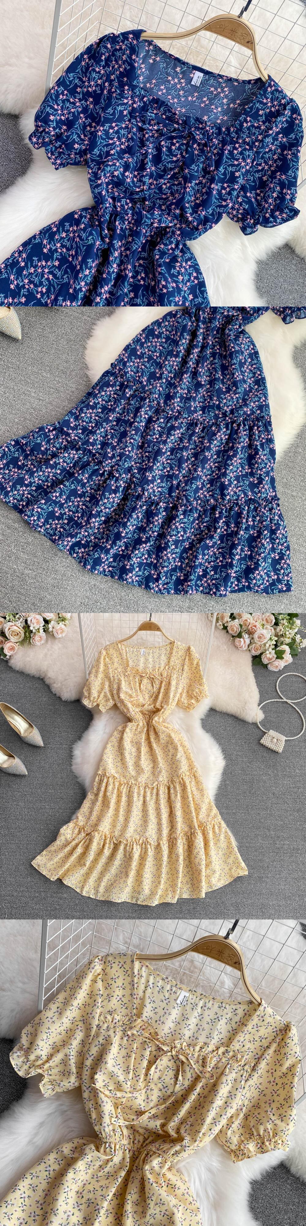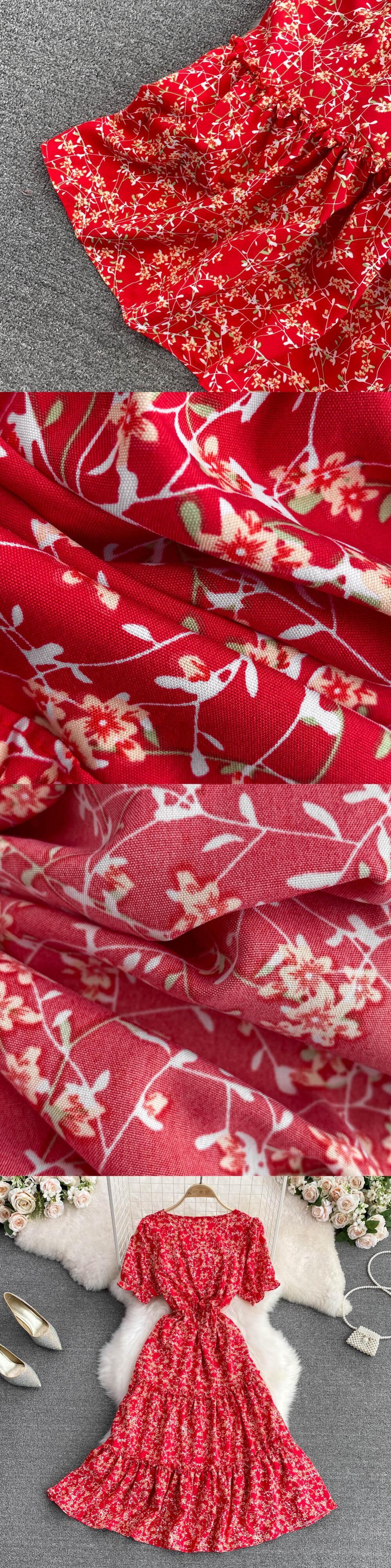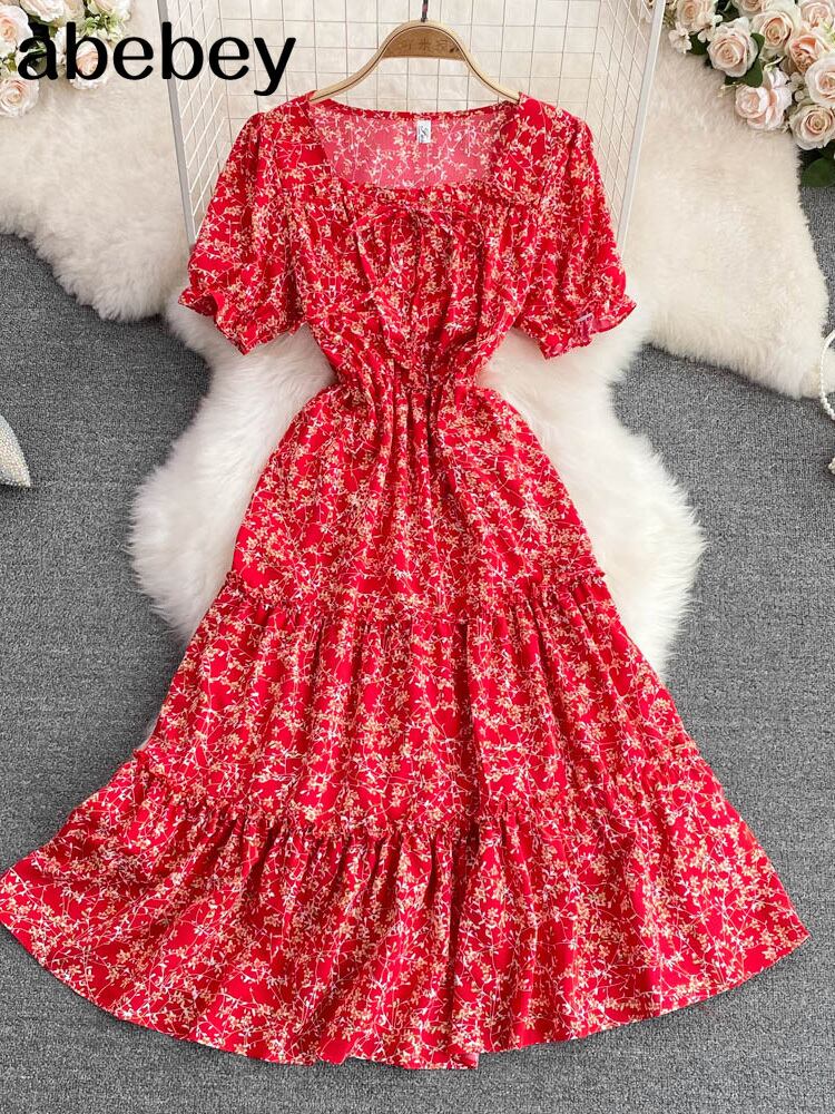 2022セクシーなスクエアカラー半袖女性ミディドレスビーチバケーションパーティーローブウエストVestidos ショート ハーフスリーブ スクウェア Abe13168906290