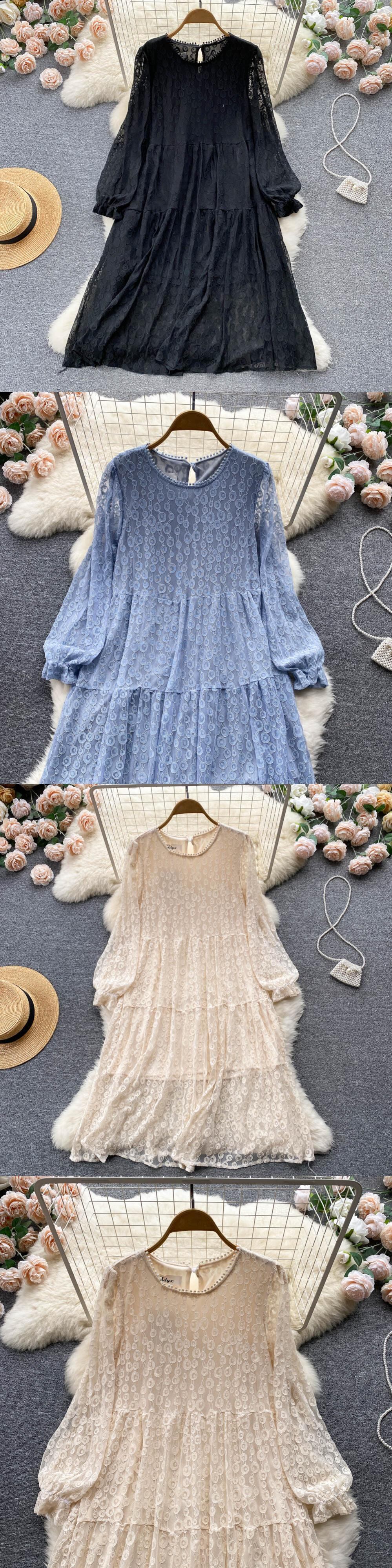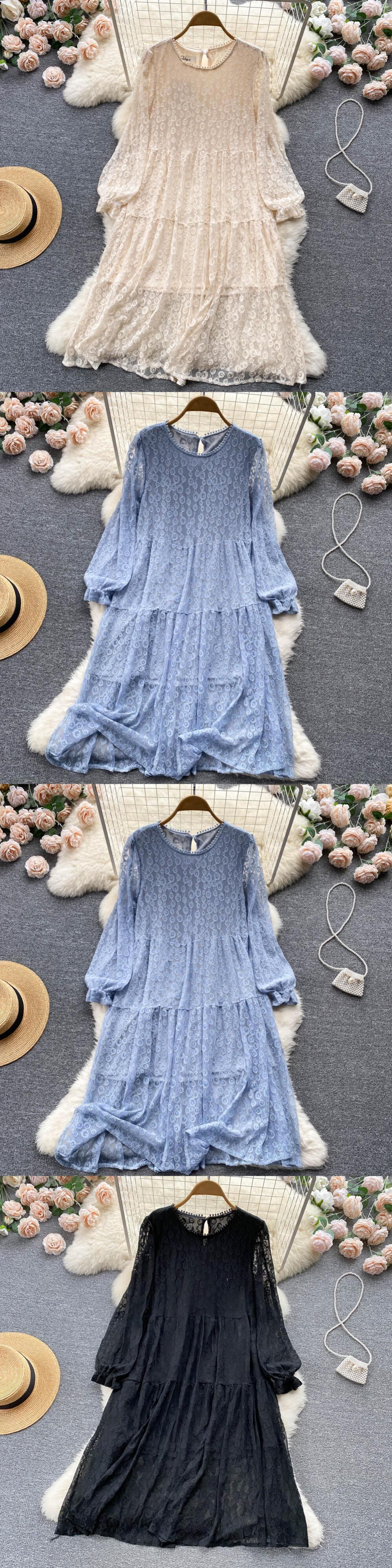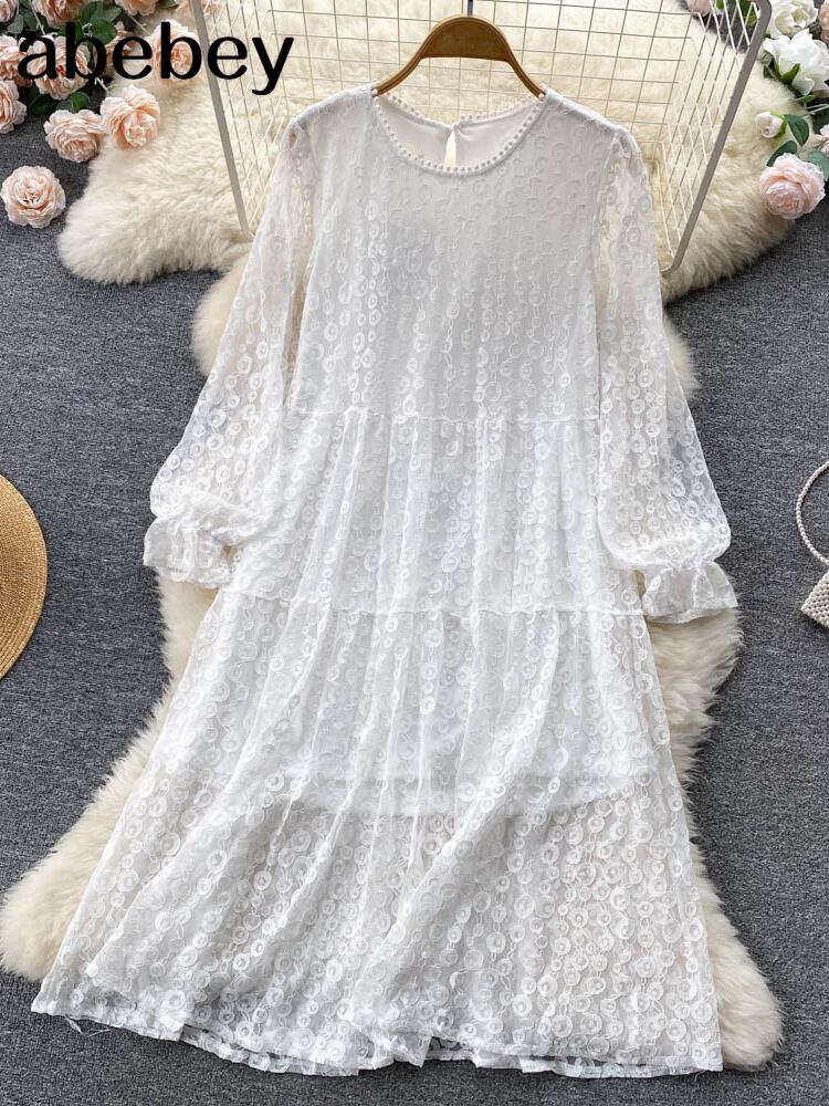 ホワイト/ピンク/ブルー2022ウィンターレース刺繡ドレス女性長袖ドレスパーティービーチミディロングドレス 刺繍 冬物 Abe47215195631