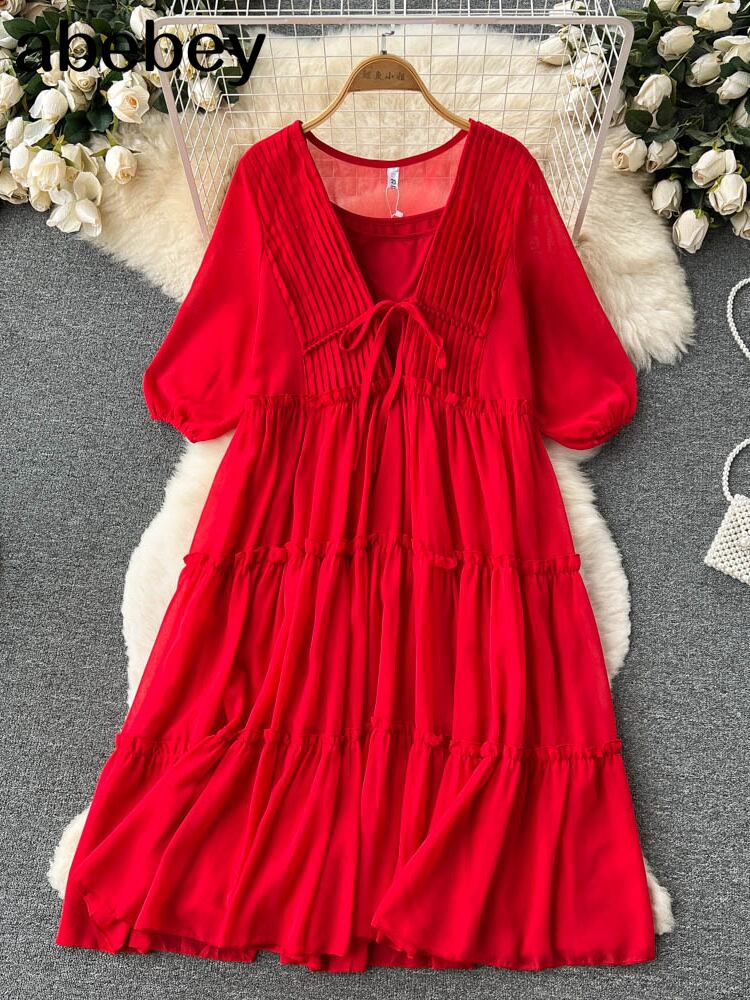 刺繍ミディドレスVネックセクシーな半袖Vestidos自由奔放に生きる2022年夏のビーチゆったりとした服の女性のドレス ハーフスリーブ サマー 夏物 Abe60898358125