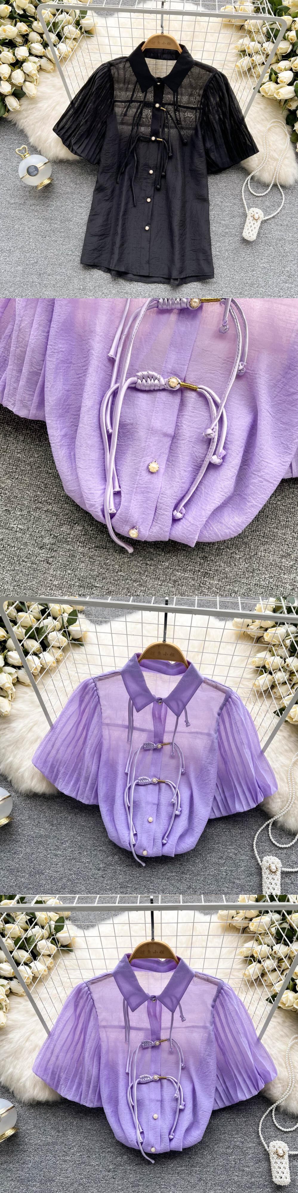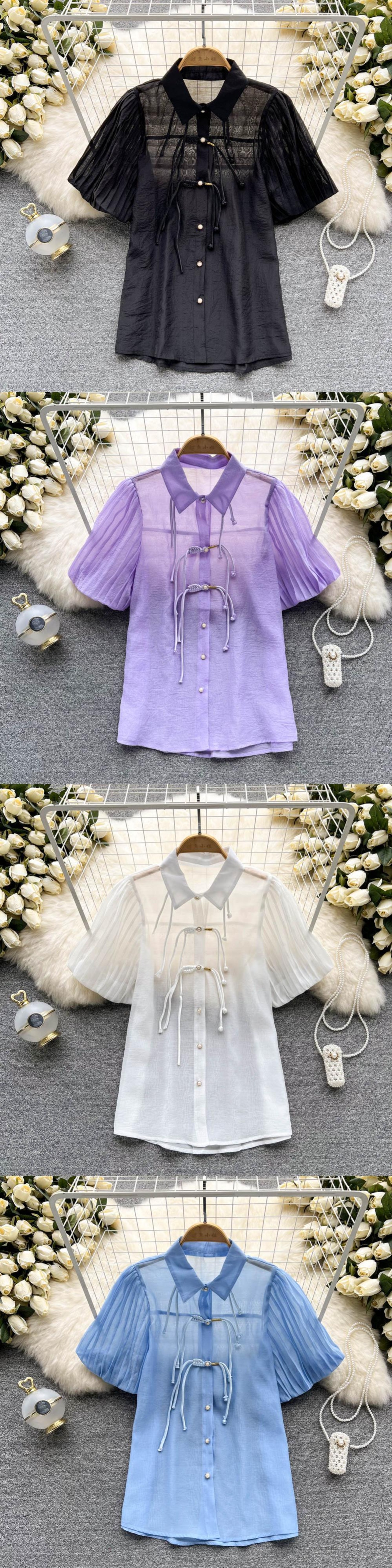 2022ショートランタンスリーブ女性ブラウスフリルシャツスリーブトップスボタンパーティー Abe9309261527