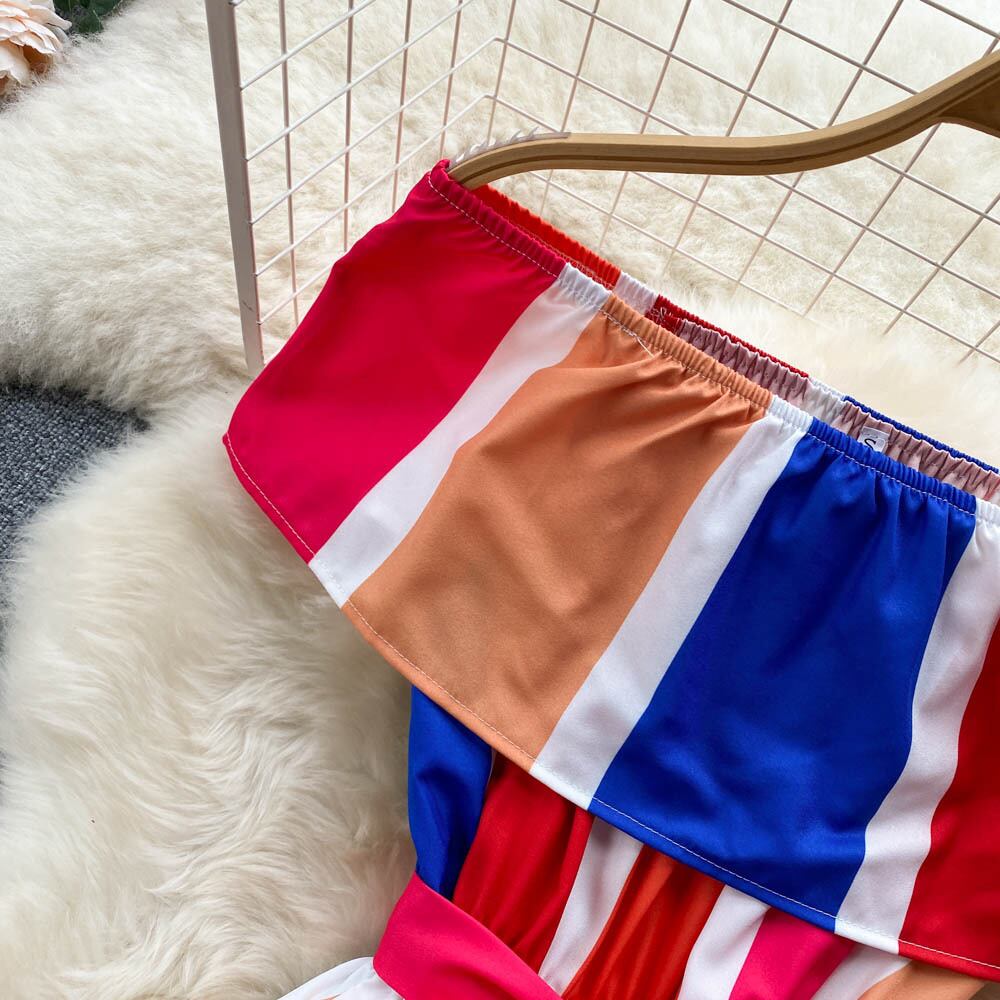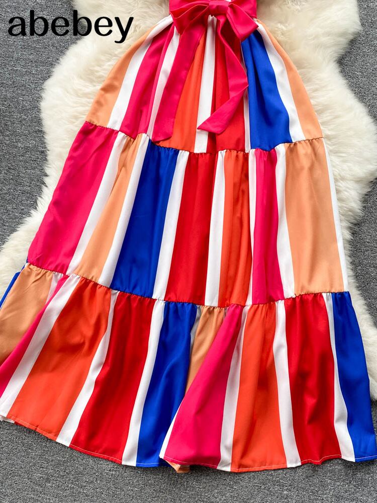 ランウェイレインボープリント絞り染めドレスドレスセクシースラッシュネックマキシロングドレス夏自由奔放に生きるVestidosEam サマー 夏物 Abe8609897878