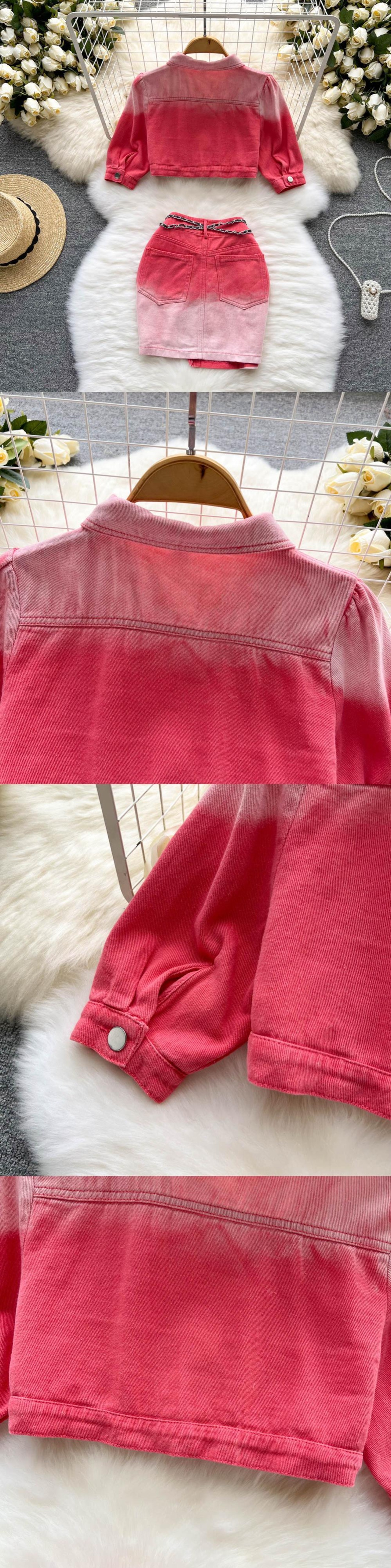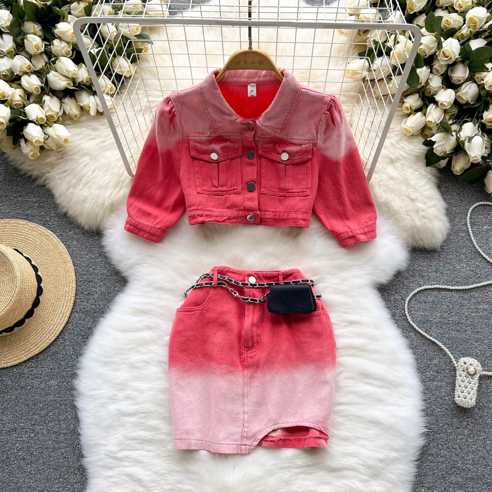 デミン2ピーススカートセット2022年夏ショートコート+ウエストミニスカートレディースジーンズ衣装 サマー 夏物 Abe6762538620