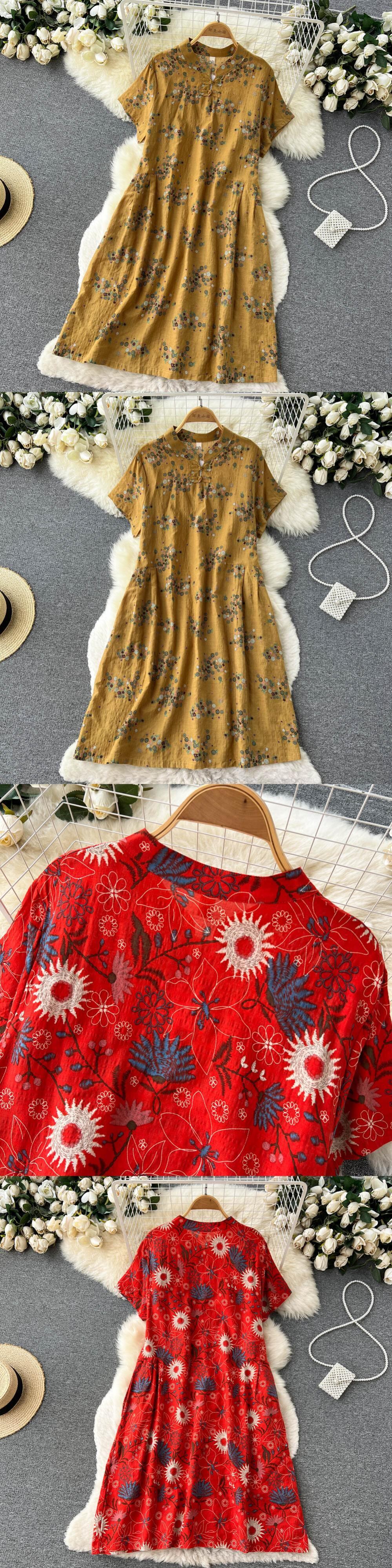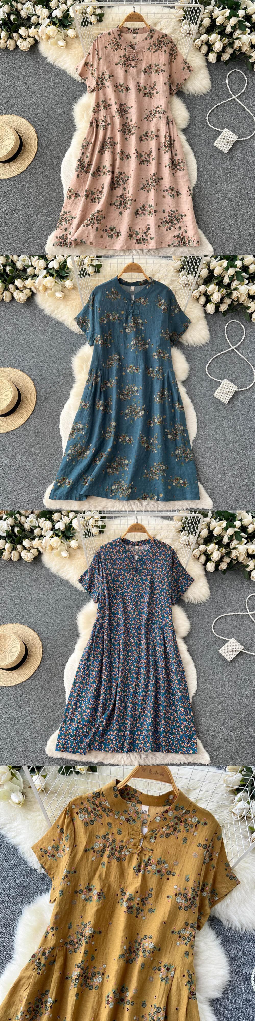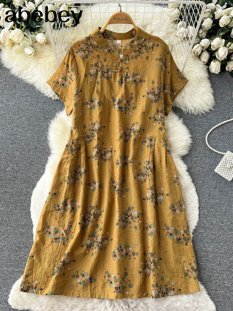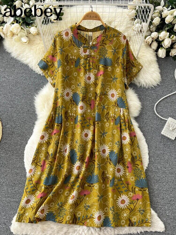 2022年夏の女性のドレスボヘミアンフローラルプリントホリデーローブVestidosOネック半袖ミディサンドレス ショート ハーフスリーブ サマー 夏物 花柄 Abe48974923749