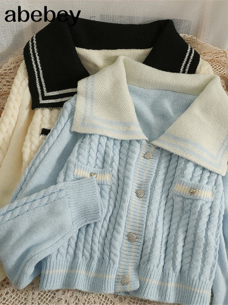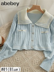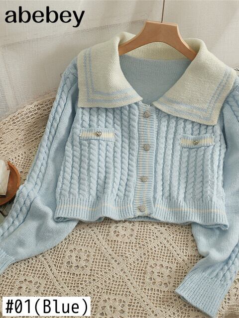 スウィートピーターパンカラーハートボタンカーディガンセーターブルー長袖ニットセーターかわいいルースウィミントップ ロング 大人ガーリー キュート カジュアル Abe16576544153