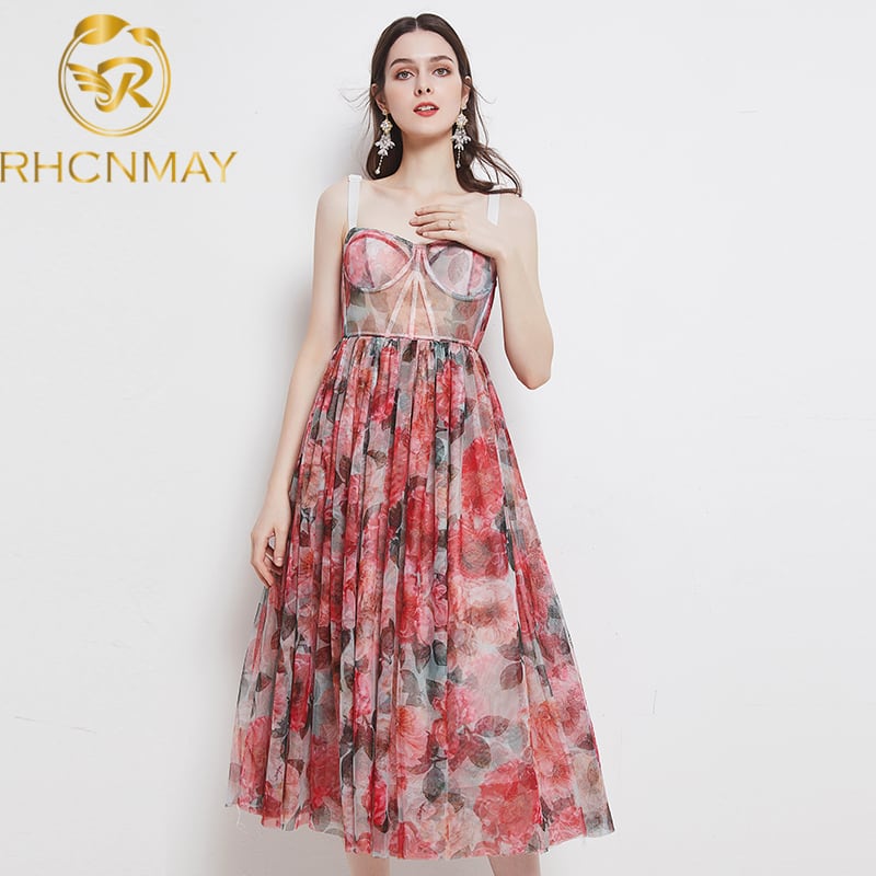 2021ホットフローラルAラインパーティーナイトドレススパゲッティストラップ夏のセクシーなゴブリンコアミディドレスエルビスローブ サマー 夏物 花柄 Rhc92451767799