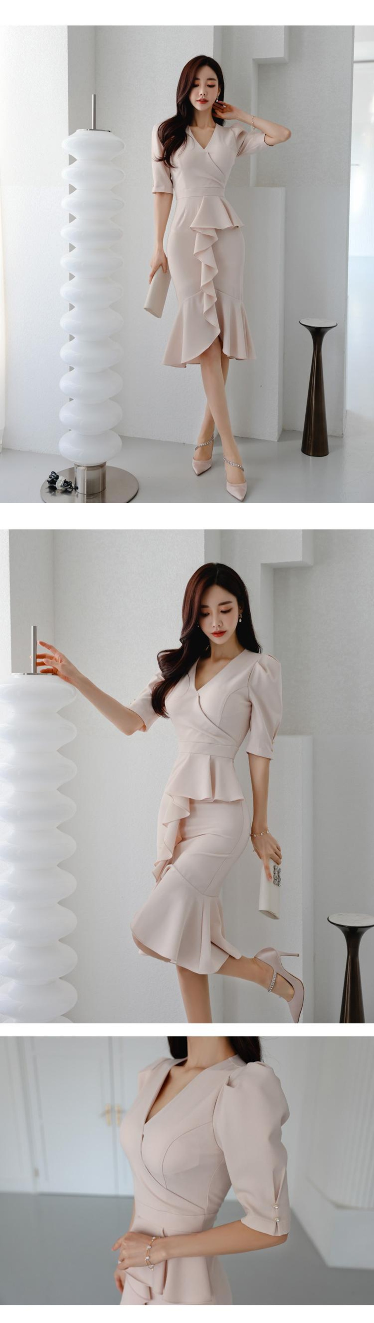 2022非対称Vネックサマーミディロングラップ不規則なドレスウエストイブニングパーティーフリル女性Vestidos ラッフル 夏物 Rhc19192146903