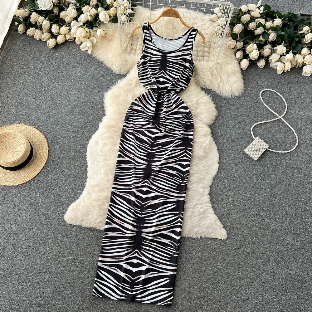 夏のマキシロングドレス女性セクシーな自由奔放に生きるストライプノースリーブビーチスタイルストラップサンドレスVestidos サマー 夏物 Abe59354559656