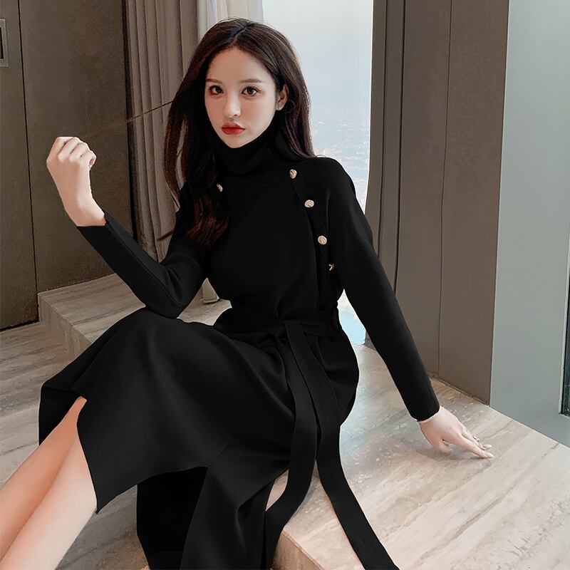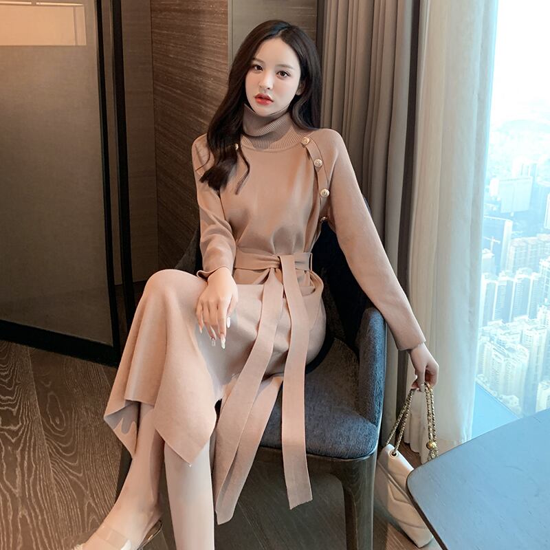 女性のセータードレス2021秋冬フレンチレトロロングオーバーニーセータータートルネックニットロングドレス オータム 秋物 ウィンター 冬物 Rhc64269612546