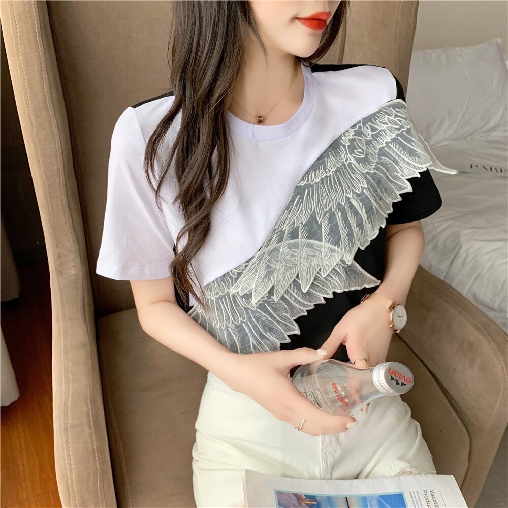 女性用半袖OネックステレオスコピックウィングコットンTシャツTシャツ2021サマーレイドプルオーバートップス ショート ハーフスリーブ 夏物 Rhc617736149