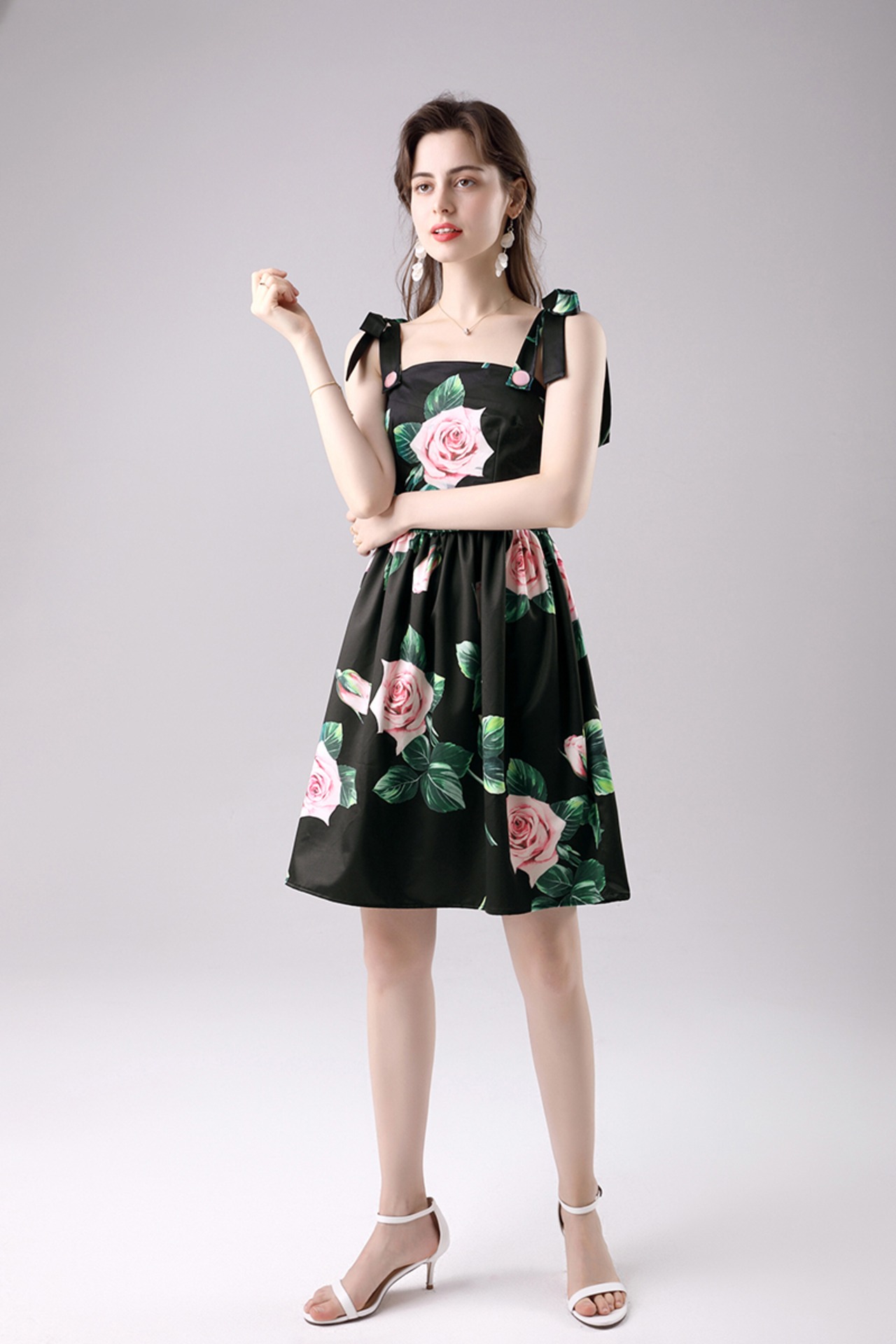 ランウェイサマーショートドレスレディーススパゲッティストラップフローラルプリントミニドレスパーティーAラインドレス 夏物 花柄 Rhc15410516512